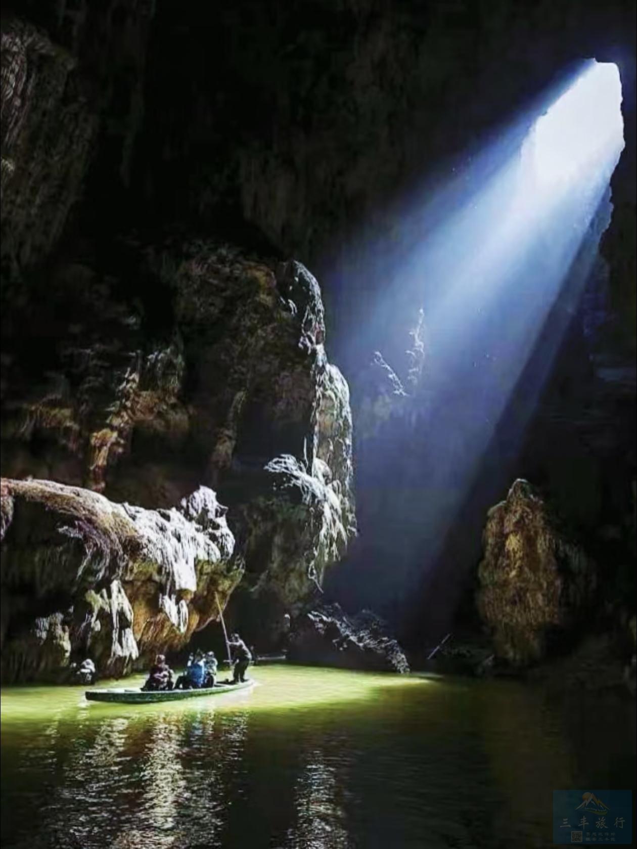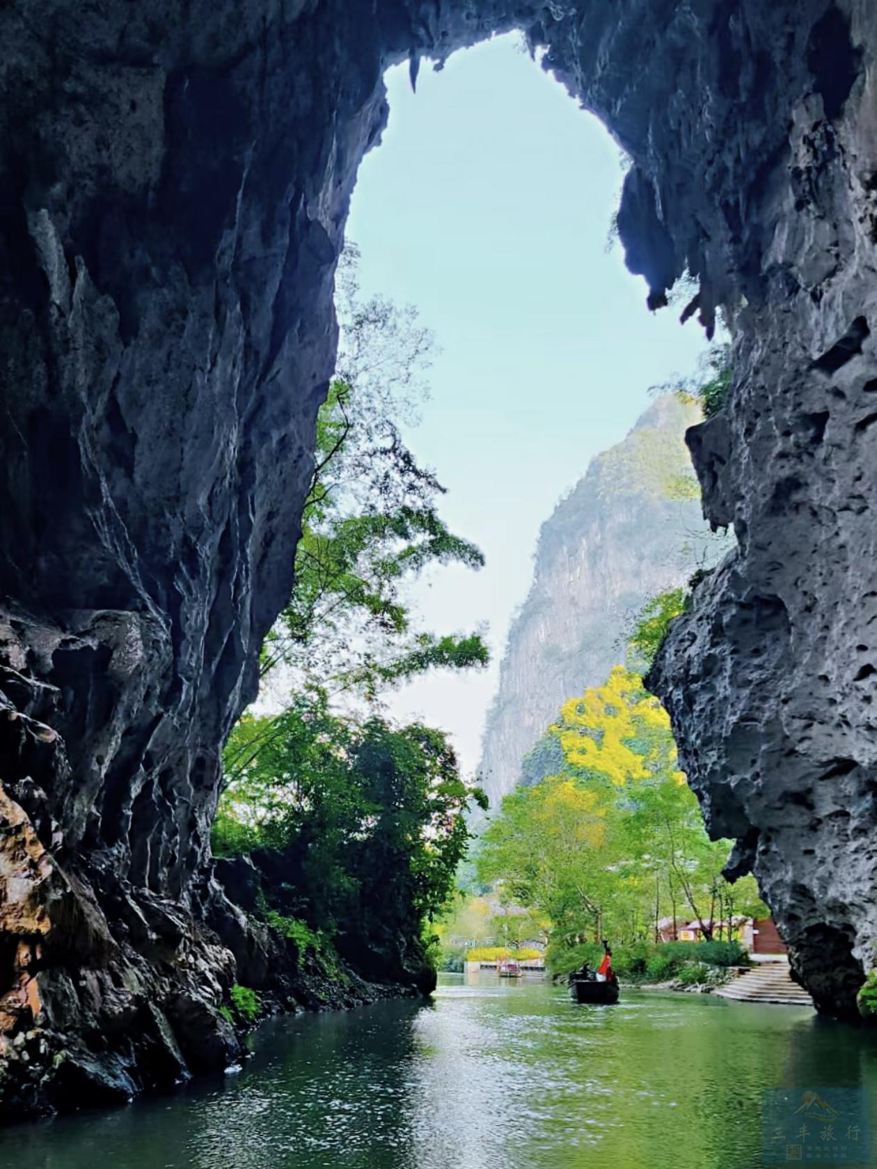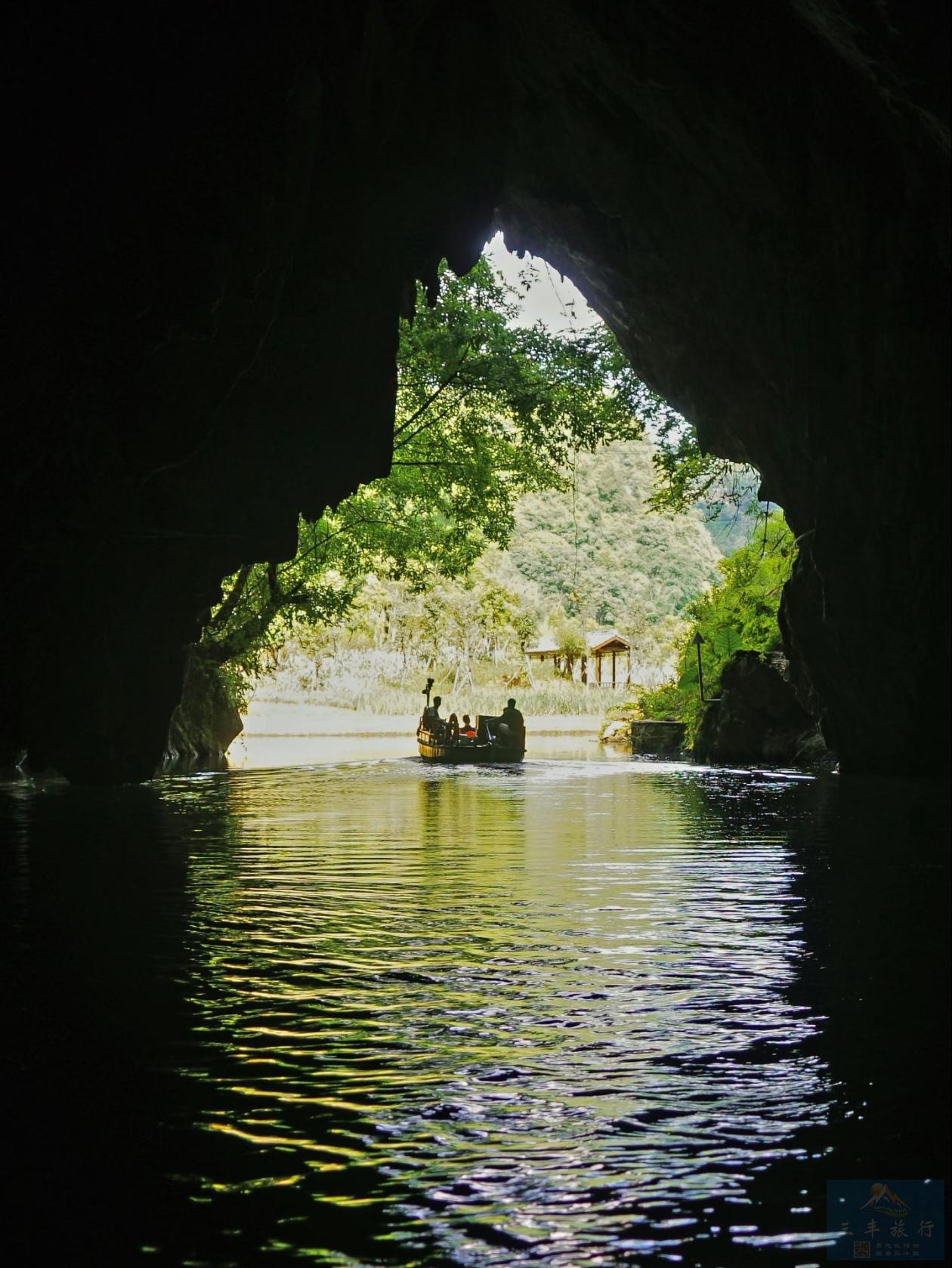 出洞口那一刻超震撼! 当船驶出洞口,光影交错,眼前“豁然开朗”!那一刻我完全理解了陶渊明笔下“林尽水源,便得一山,山有小口,仿佛若有光”的意境。