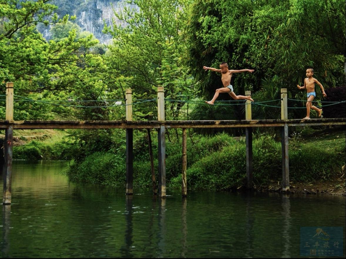 在这里,你能真正体验到那种“鸡犬相闻”、与世无争的宁静,清澈的河水中有时不时有小孩在水中嬉戏。