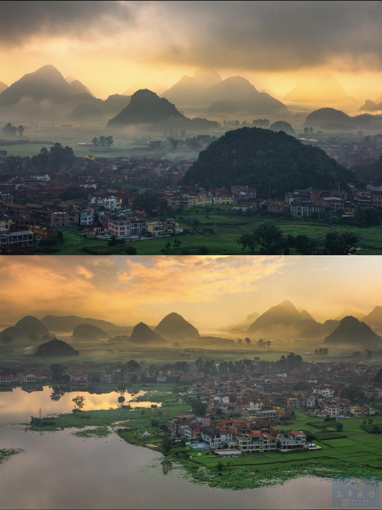 万峰林最美的便是清晨和傍晚,清晨,万峰林在晨雾中若隐若现;日落时分,晚霞给山峰与田野堵上了一层柔光,梦幻至极。