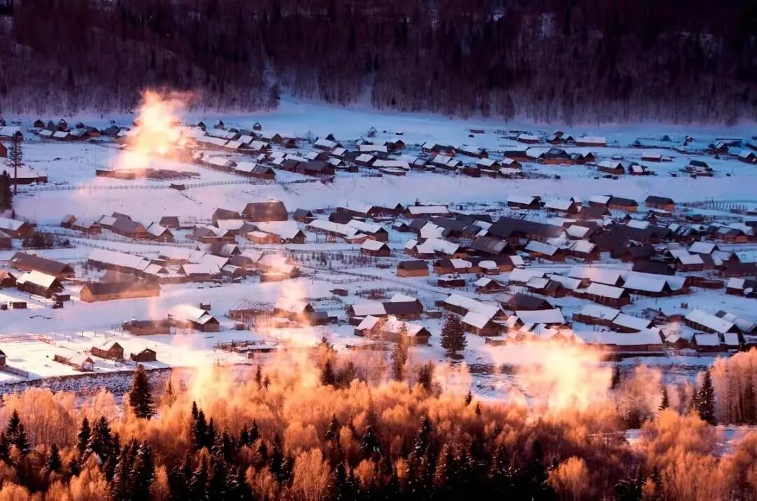 自然景观丰富,每个季节都有自己独特的风景。冬季的白哈巴村,远山、白雪、木屋、炊烟