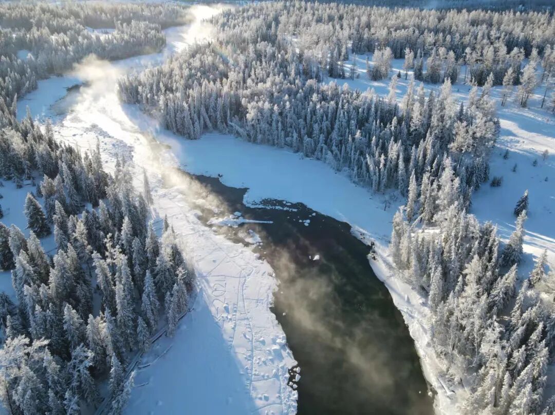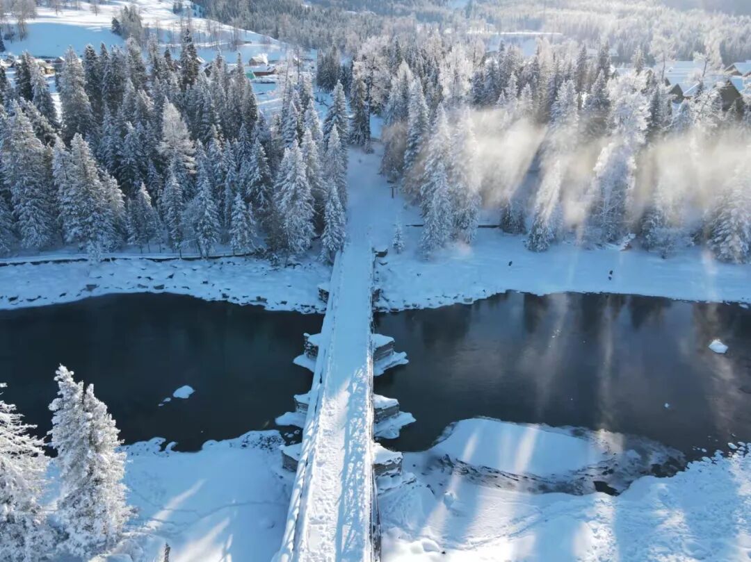沿途的雪岭云杉挂满雾凇,阳光洒下,晶莹闪烁。凛冽的风骨与温柔的景致在此交织,铺展出一场极致的沉浸式冰雪盛宴。