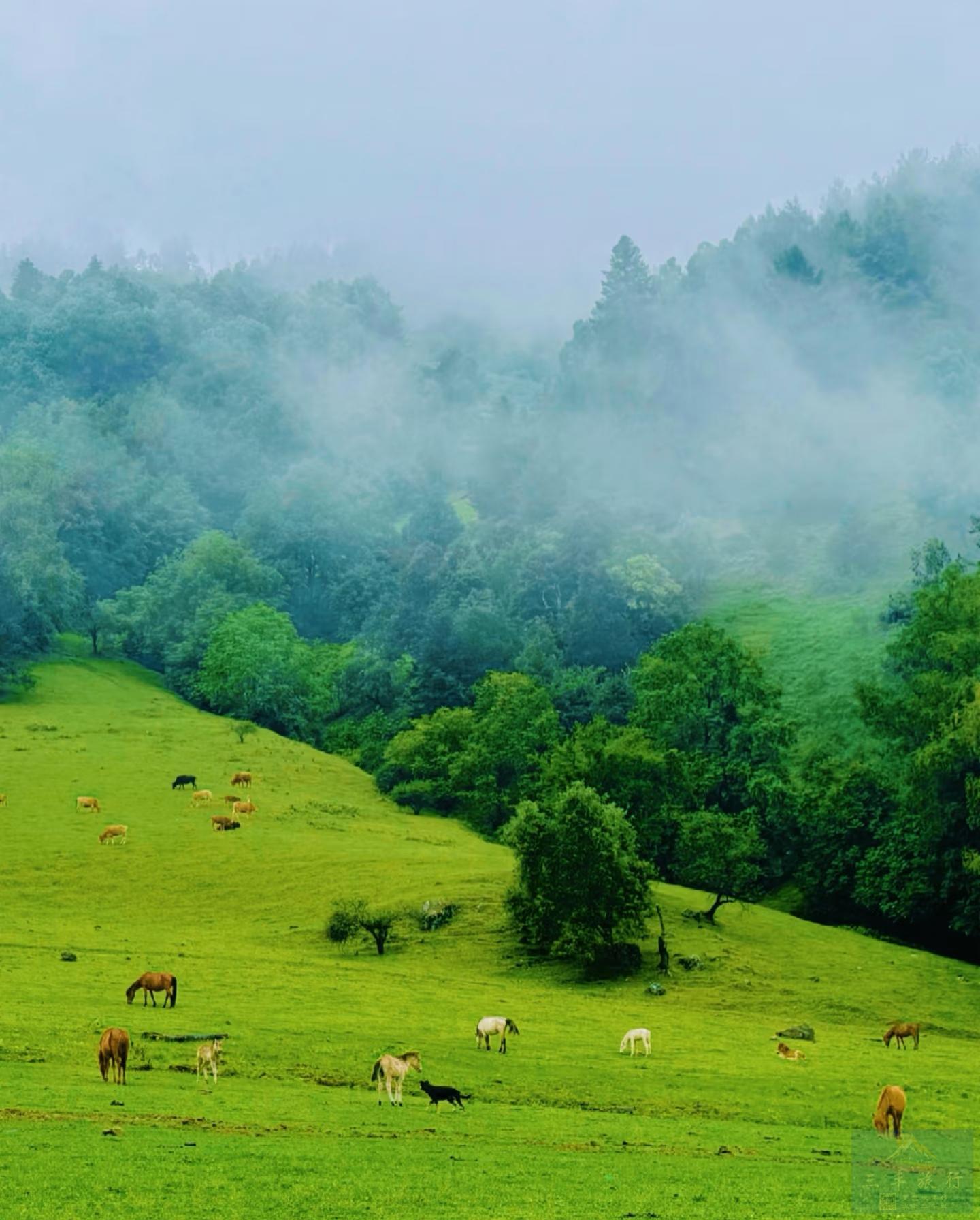 这里没有酷热的夏天,没有网红古镇景点的喧嚣,没有城市的快节奏和车水马龙,只有高山草甸和涓涓溪水,这里小香猪乱跑,牛羊悠闲散步。