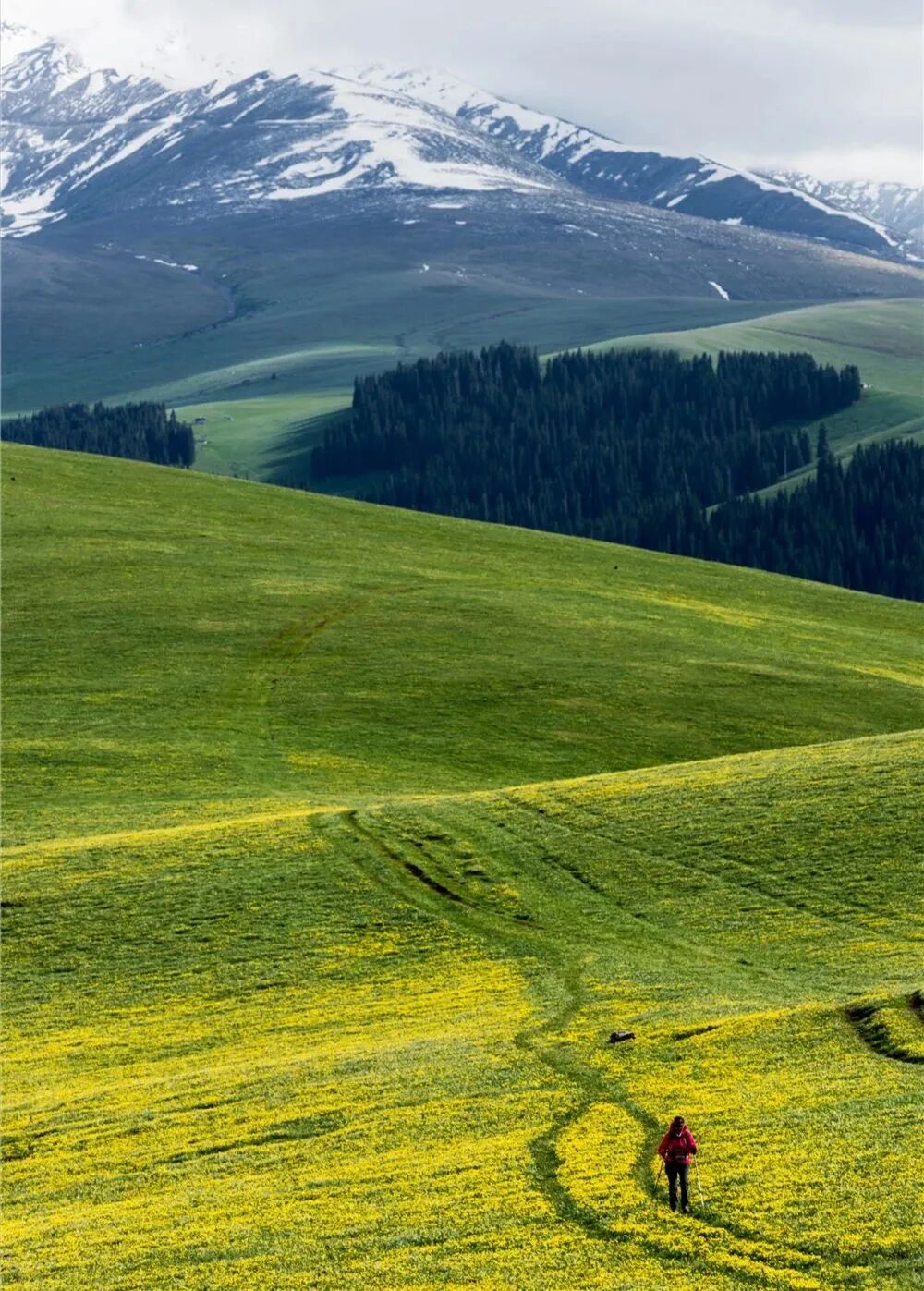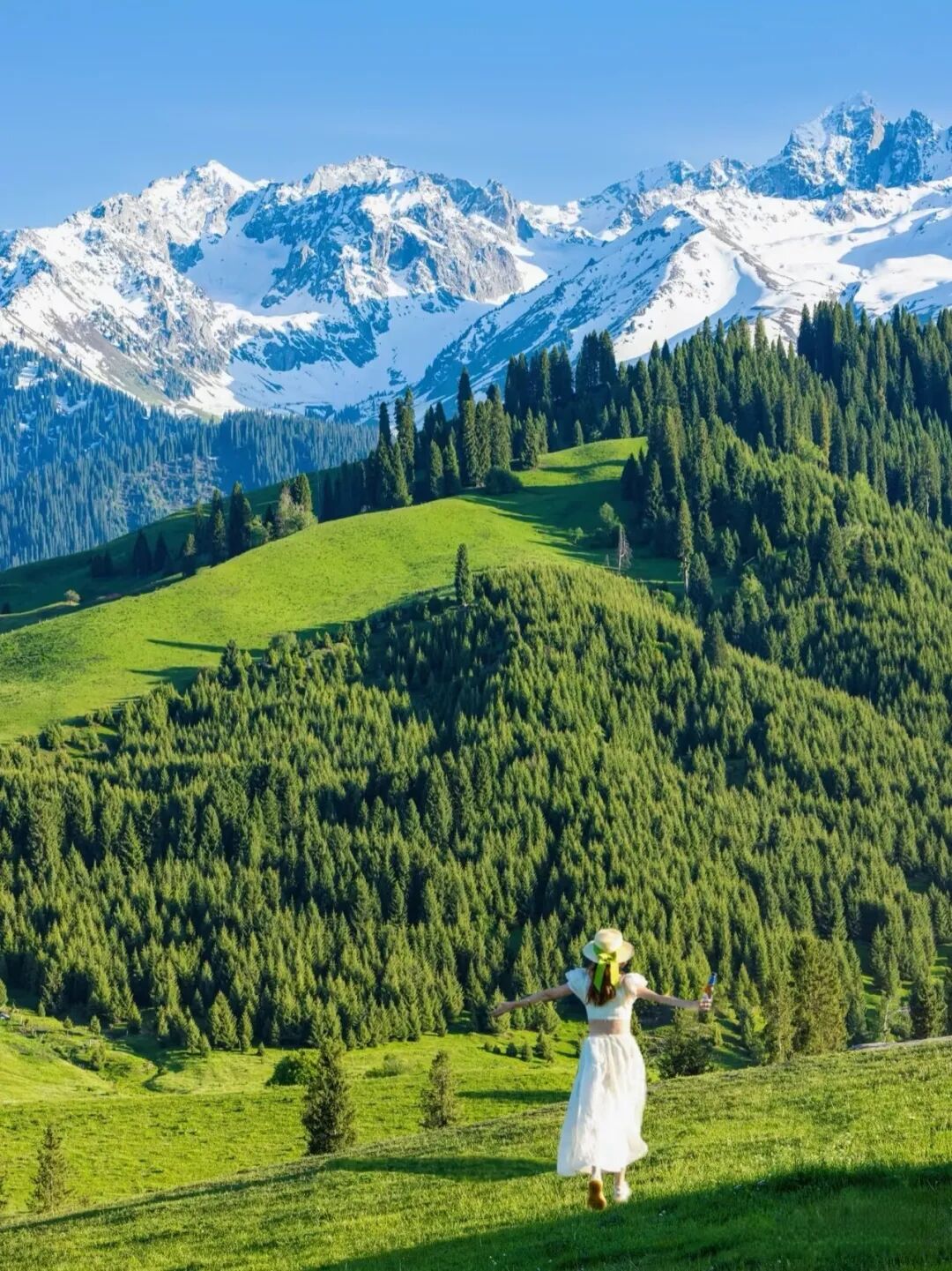 未化的雪山覆着皑皑白雪,脚下草甸铺就嫩绿绒毯,溪流载着融雪叮咚前行,云杉成林遮天蔽日,风里都裹着松枝与野花的清香。避开旺季人潮,深入夏塔核心,沿着千年玄奘古道徒步,一步一景皆是治愈,抬头见雪山巍峨,低头遇溪流潺潺,沉浸式解锁天山腹地的纯粹与壮阔。徒步线路难度适中,新手友好,无需专业装备也能轻松参与;全程轻徒步无冗余,沉浸式赏景,随手拍出雪山徒步大片!