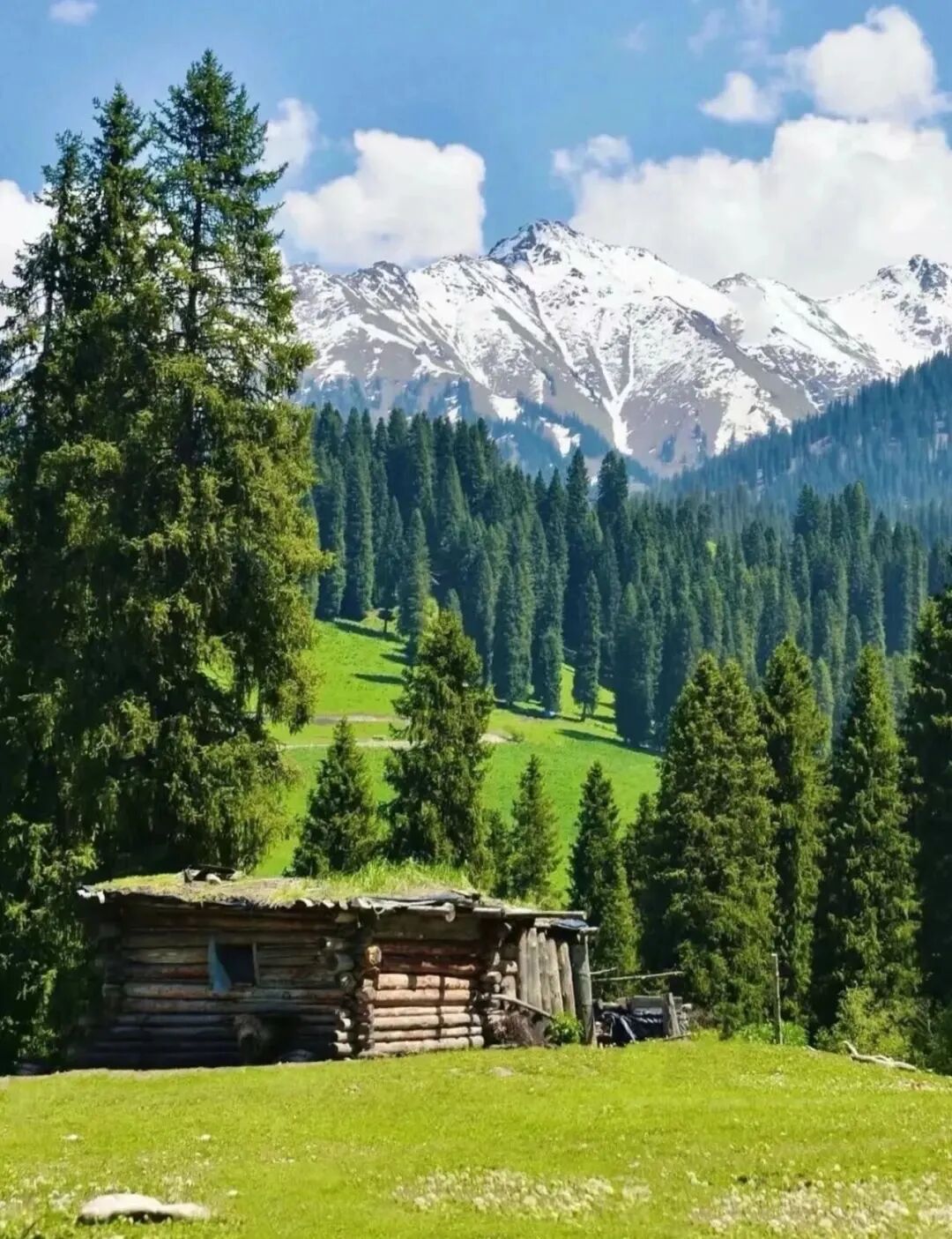 早餐过后我们出发前往库尔德宁,库尔德宁拥有国内最大的原始云杉林,中国最美的十大森林之首,是世界自然遗产地,国家级雪岭云杉自然保护区。老木屋、草原、雪山、森林、野花,一切与美好有关的元素,这里都有。