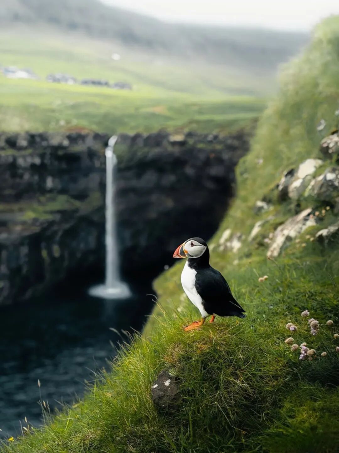 海鹦鹉(Puffin)是Mykines岛的金字招牌,如同岛上的精灵,它们或在空中翱翔,或在海边栖息,给这片土地带来了别样的生机与活力。为这片神秘的群岛注入了灵动与生机。