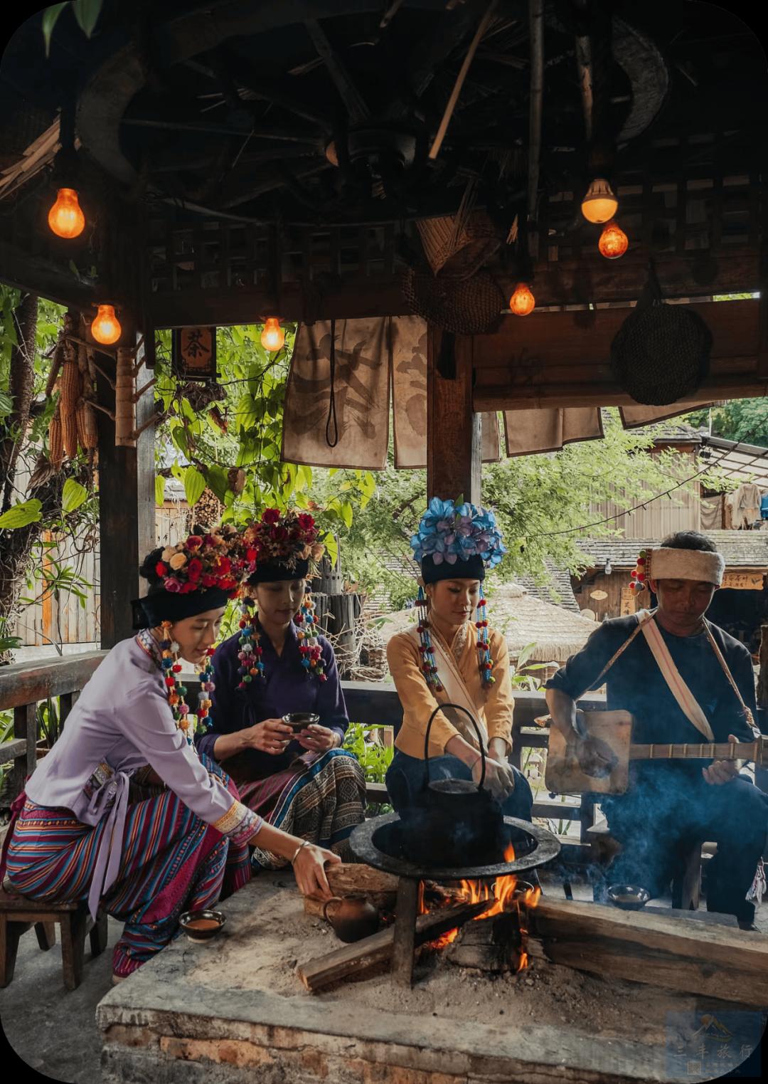 布朗族祖先帕哎冷在迁徙途中发现茶叶祛病功效,带领族人定居驯化茶树,留下“唯留茶种予子孙”的祖训。从此,傣族、布朗族、哈尼族、佤族、汉族5个民族世居于此,逐渐形成“村村种茶、家家制茶”的传统,直至今日,已有2.8万亩古茶林与9个民族村寨共生于此,构成“茶林共生、人地和谐”的世界文化遗产核心景观。