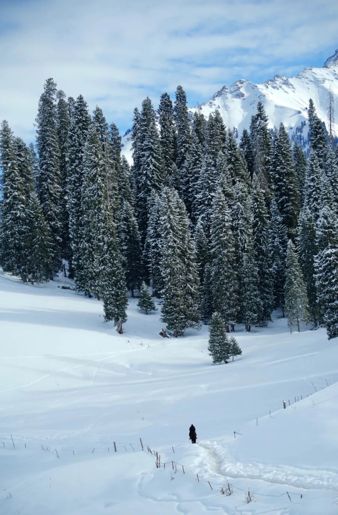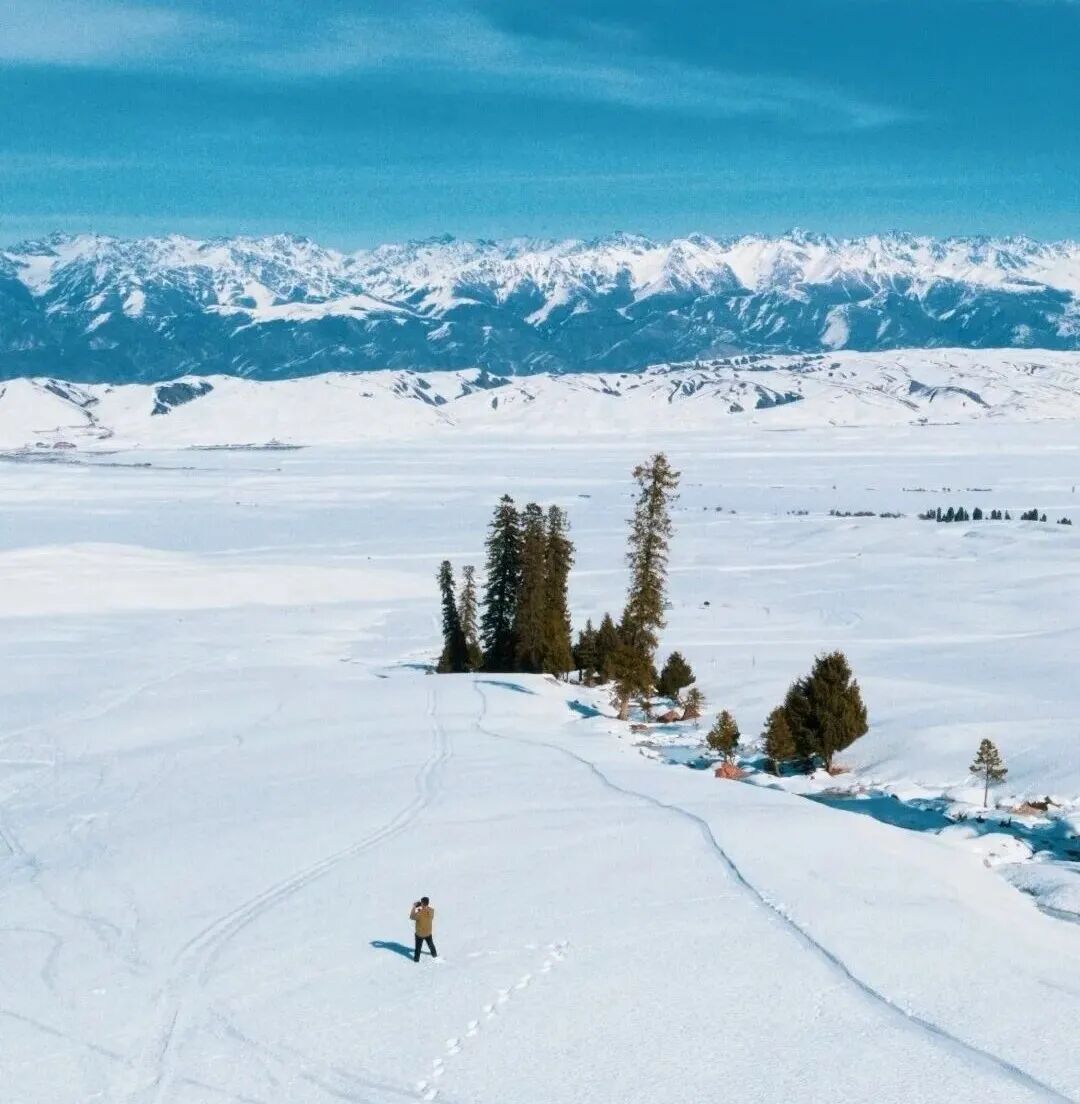 琼库什台的冬天,是纯粹的静谧世界。冰雪女王仿佛在此停驻,将山峦、森林与河流都封存于白雪之中,打造出一座巨大的水晶宫殿。这里游人罕至,万物静默,所有景色仿佛只为你一人展开。