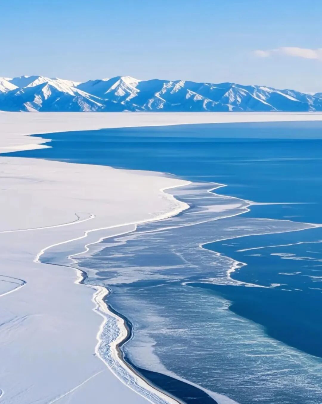你见过会呼吸的蓝冰吗? 冬天的赛里木湖,绝非简单的“湖面结冰”。它是一场 “冰封星球”的奇幻现场—湖面化作一块巨大而深邃的蓝宝石,清澈冰层之下,冻结着无数如梦似幻的冰泡奇观,如同大地沉睡时呼出的最后气息。
