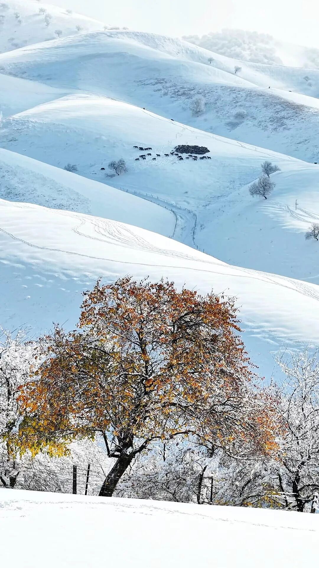 平均海拔1800米的那拉提,拥有广袤的雪原与连绵的雪山,雪岭云杉披挂雾凇,构成一幅壮丽的北国画卷。这里不仅是《中国国家地理》认证的“六大最美草原”之一,更拥有设施完善的滑雪场,粉雪如棉,雪道开阔,让游客在雪山环抱中尽享滑雪乐趣,体验冰雪运动的激情与浪漫。