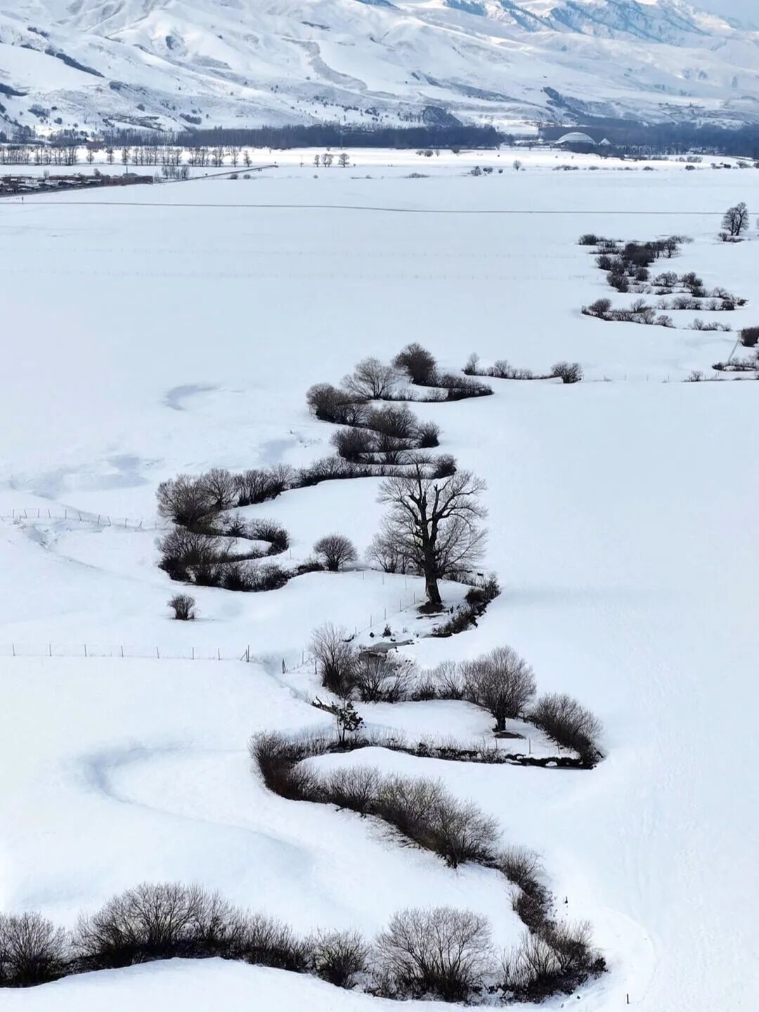 在伊宁县英塔木乡,还藏着一处由天然温泉形成的不冻水域—天鹅泉。这里不仅是天鹅越冬的家,更是一个如梦如幻的地方。晨光中,湖畔的雾凇与芦苇被染成淡金,水面薄雾袅袅,天鹅悠然游弋,如同一幅会呼吸的水墨画。若你在日出前抵达,或许就能捕捉到雾凇与天鹅共舞的绝美瞬间,世外桃源一般。