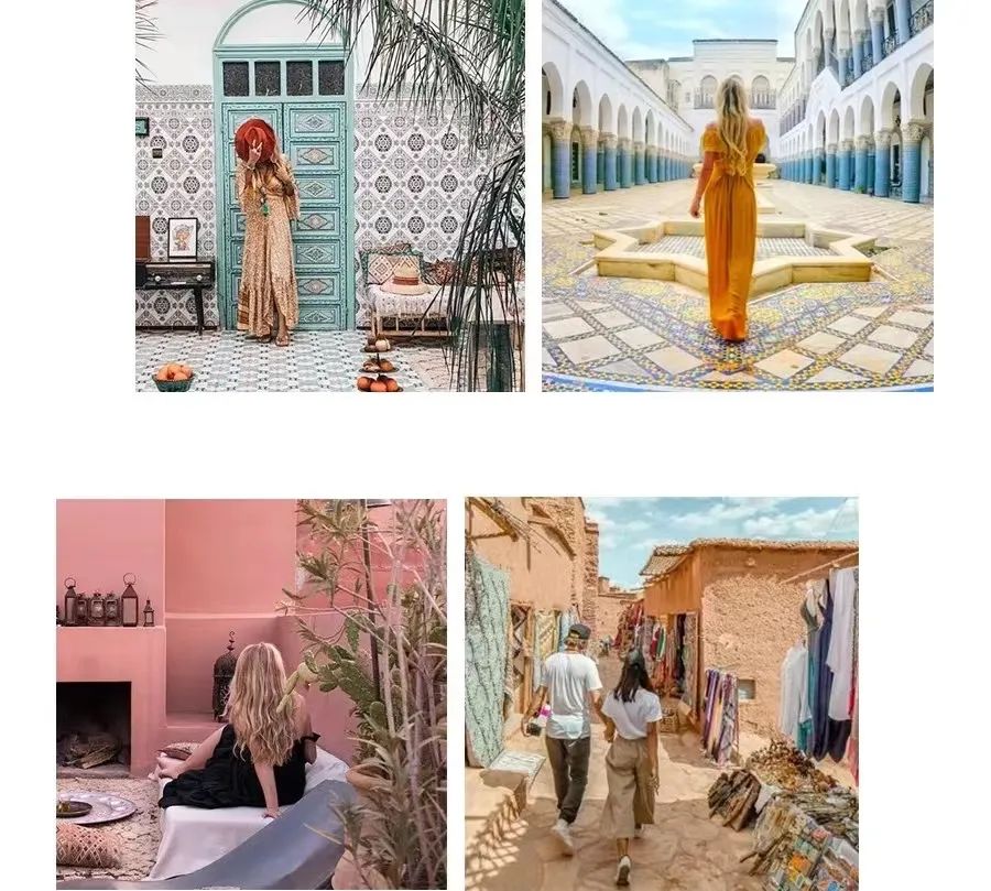 2.摩洛哥是伊斯兰教国家,所以女性游客应注意自己的着装,不要穿着短裤、吊带裙。虽然摩洛哥在阿拉伯世界中相对开放,女性游客可以不带头巾,但清凉的打扮还是会招来非议。