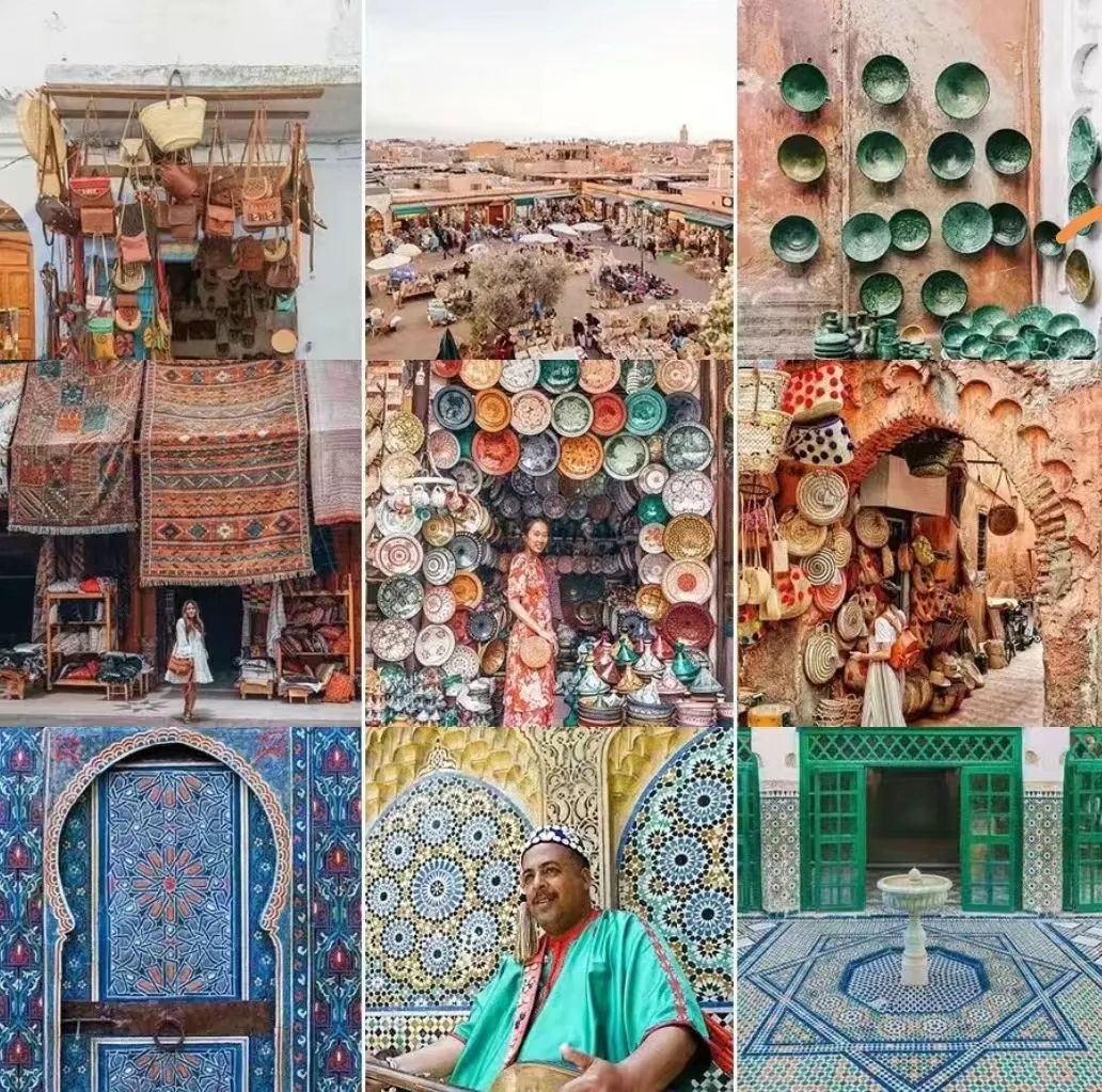 漫步在马拉喀什极具阿拉伯特色的街道,人潮拥挤,肤色各异,处处散发着古老而又神秘的风情。