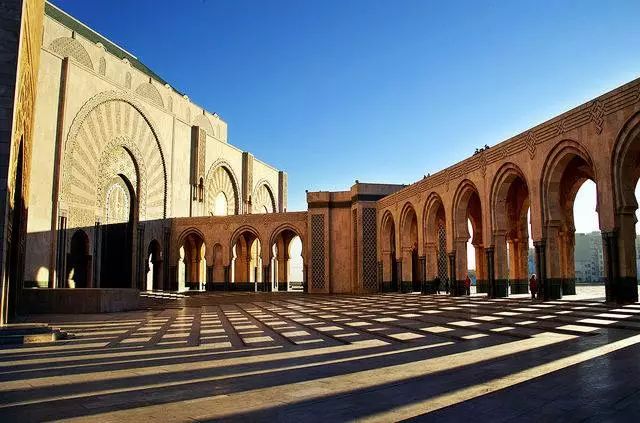 哈桑二世清真寺是世界第三大清真寺,寺庙有三分之一的部分建于海上,据说是为了纪念那些从海上来到摩洛哥繁衍生息的阿拉伯祖辈。