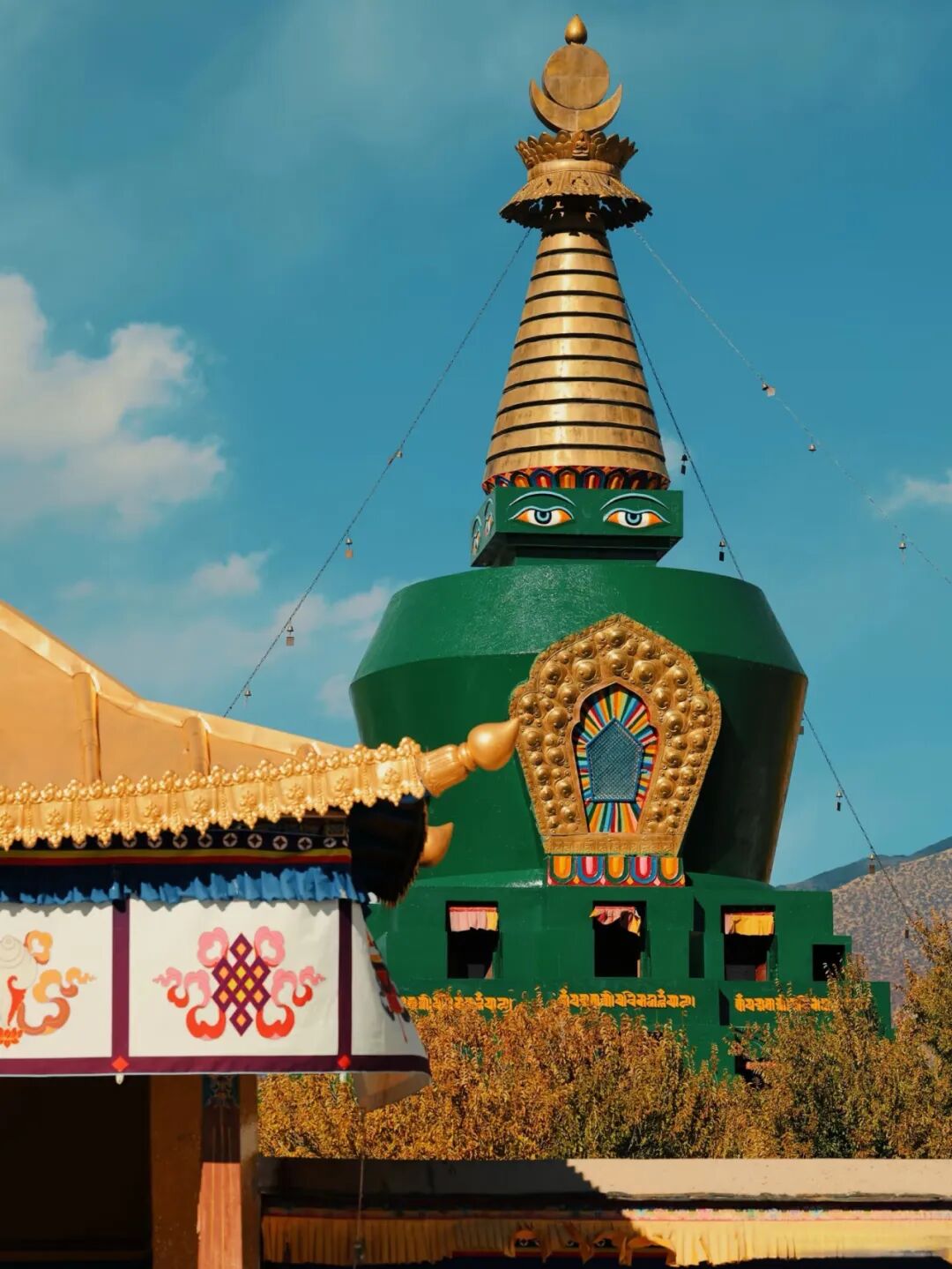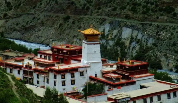 这座寺庙,拥有全西藏最为殊胜的一座佛塔,900年前,噶举派第二代祖师米拉日巴大师,为了自己的老师,一个人花了6年零7个月,前后六次垒砌起了庙中的九层佛塔。