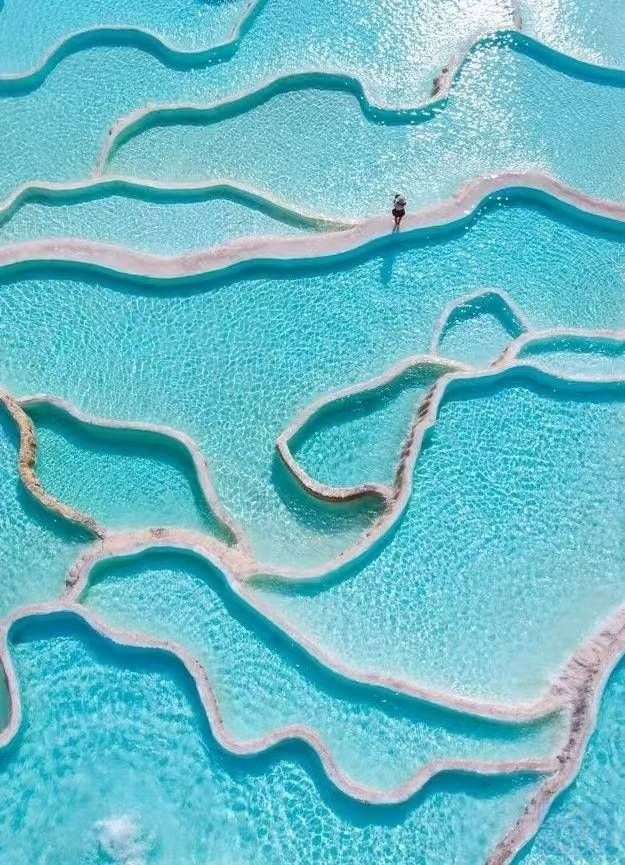 2、美轮美奂的广西版“土耳其棉花堡”,让你徜徉在蓝色的童话世界里