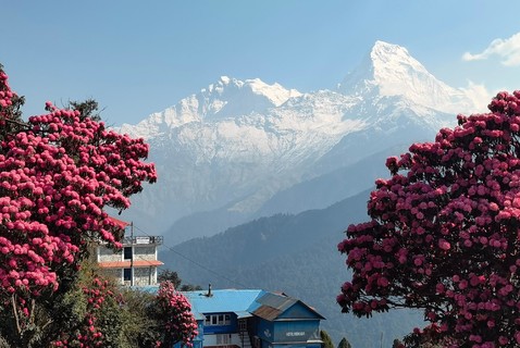 凌晨四点半早起,我们从客栈出发,走一个小时,登上海拔3210米的Poonhill山顶看日出,与道拉吉里,安纳普尔纳,鱼尾峰等群峰。回到客栈吃过早餐后,我们将前往Tadapani,沿途将经过杜鹃林。