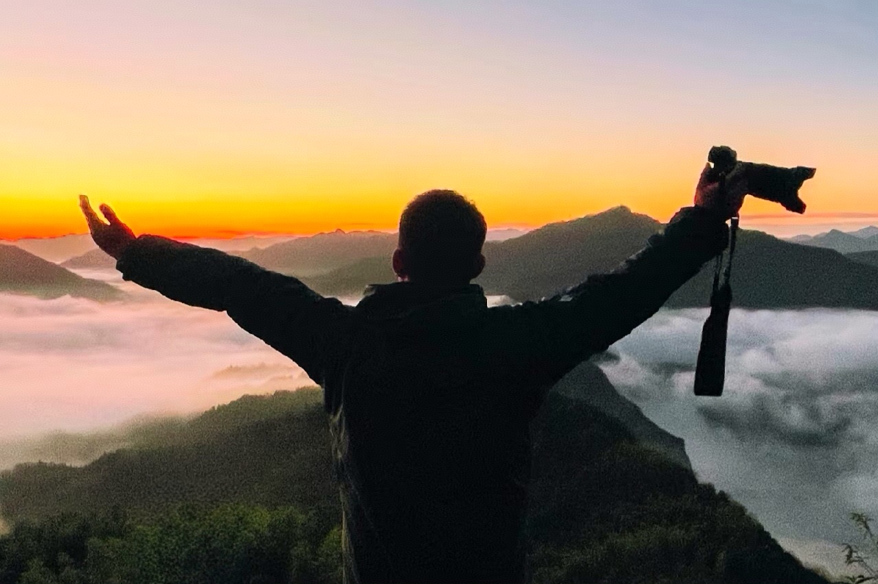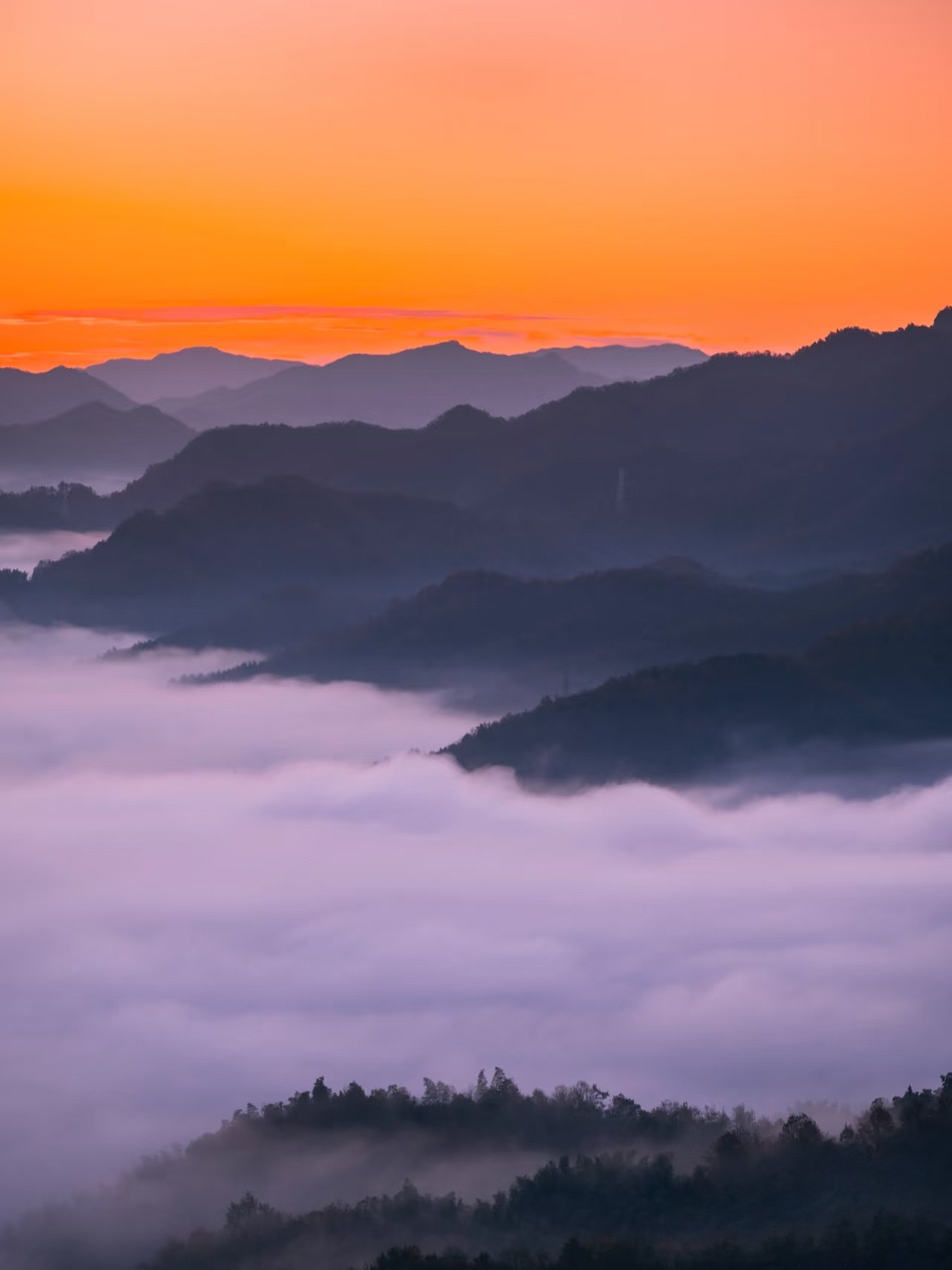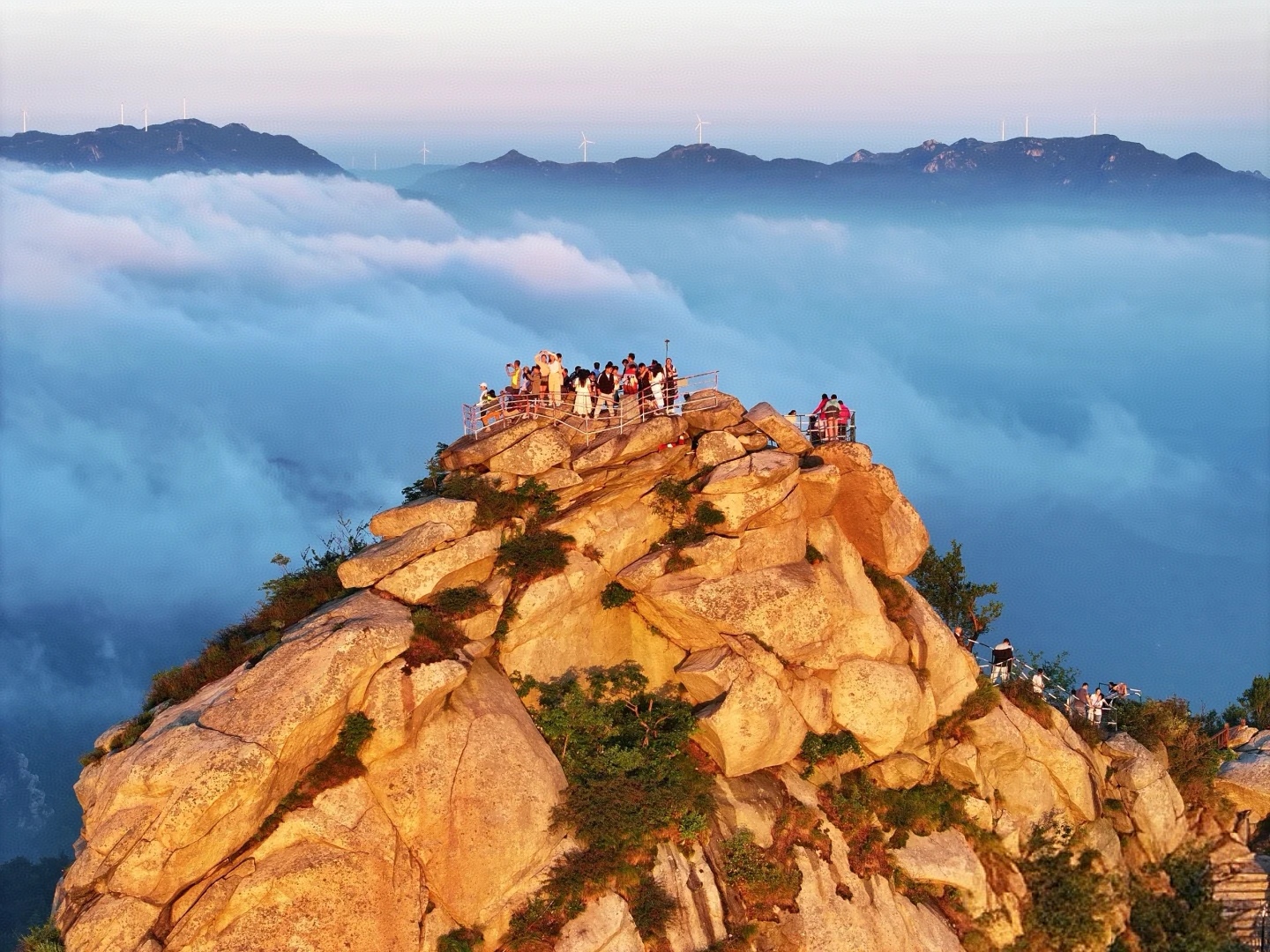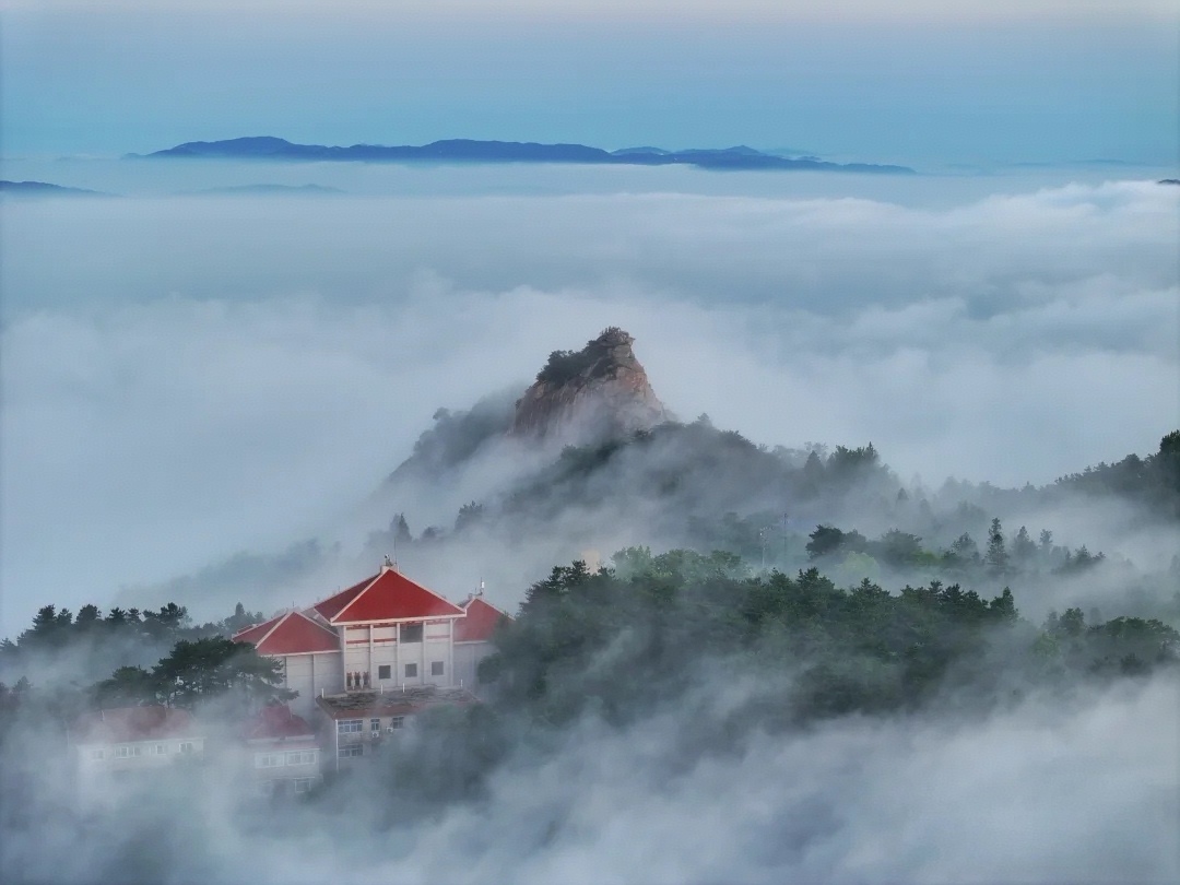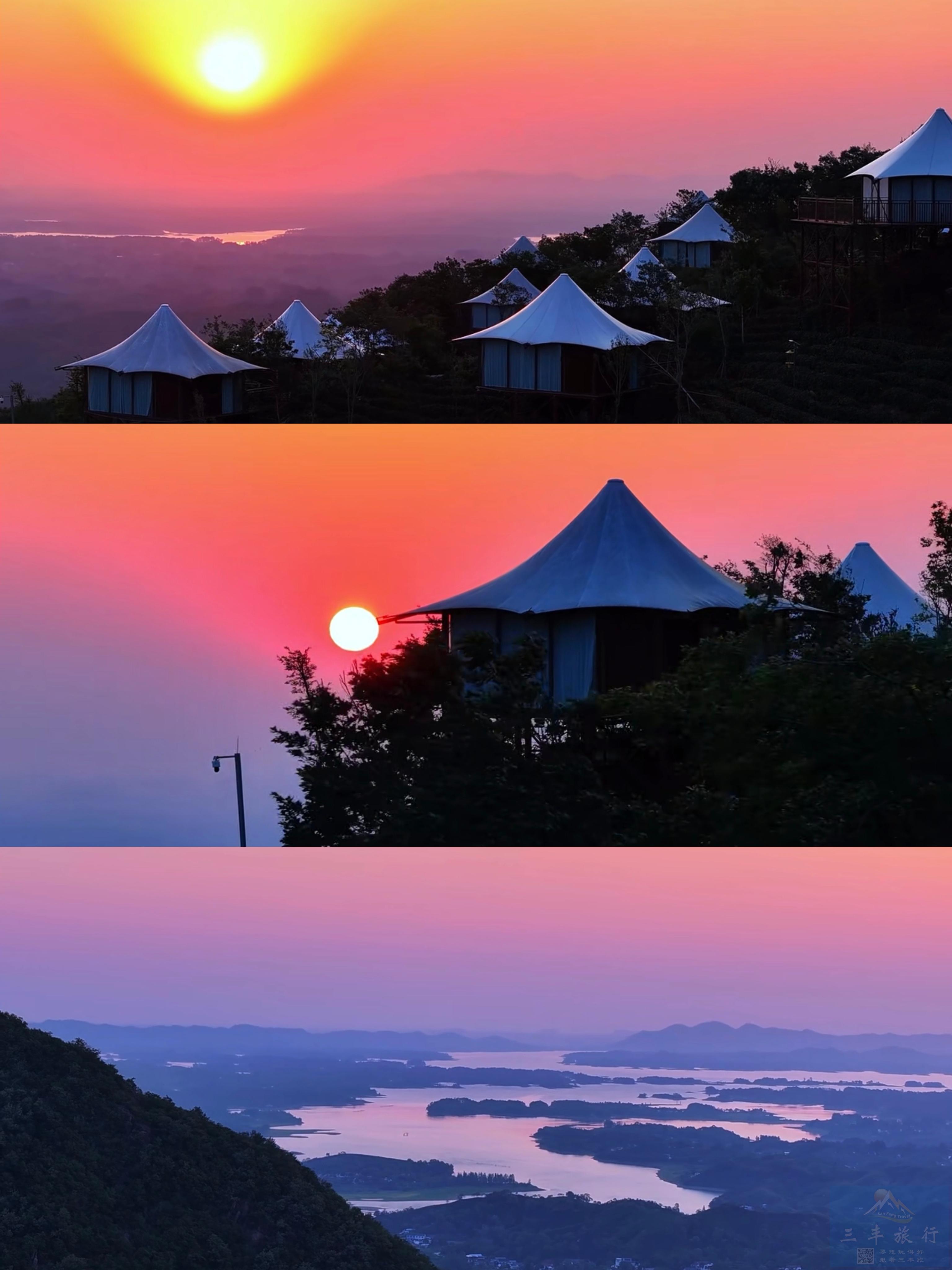 清晨起来,我们来到【屋脊山观景台】看云海、观日出; 由于山脚下有水库,云海现象几乎每天都有。