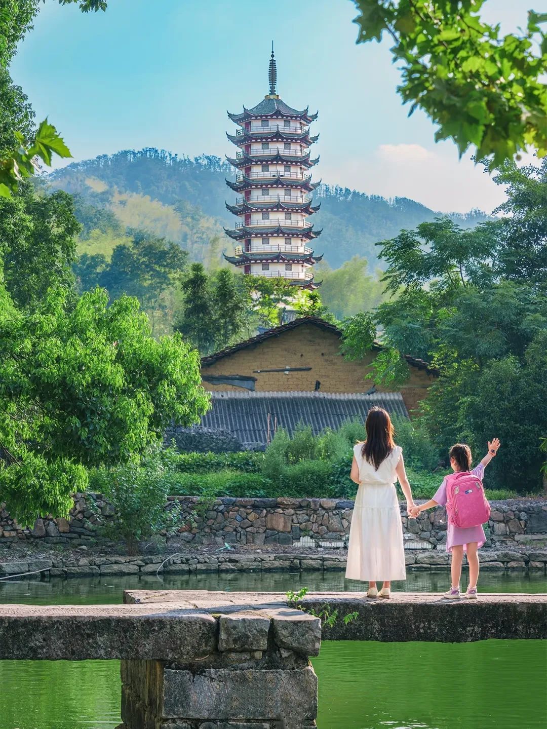 石桥、青砖、白墙、流水构成一幅江南水乡景象