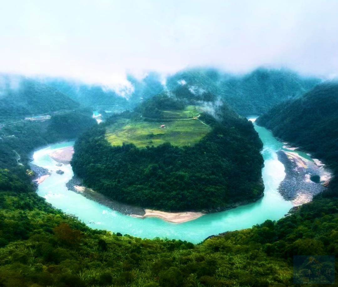 作为墨脱最震撼的自然景观之一,果果塘大拐弯藏在德兴乡的群峰之间,是雅鲁藏布江在墨脱境内勾勒出的绝美弧线。江水奔涌至此,受山体阻挡完成近180度的急转,形成饱满圆润的马蹄形河曲,远观如一条碧蓝的绸带,温柔缠绕着翠色的山岗,故而也有着“Ω形江湾”的美誉。两岸植被繁茂,热带雨林的浓绿层层叠叠,云雾时常萦绕山间,江面时而澄澈如镜,映着流云与峰峦的剪影;晴日里阳光洒落,江面波光粼粼,偶尔还能望见双彩虹悬于江上空,天地间尽是通透的明媚。站在观景台远眺,江水的磅礴与山林的静谧相融,听江涛拍岸的回响,看云雾在山谷间流转,便能读懂自然造物的神奇与浪漫。顺路可打卡不远处的美人鱼大拐弯,江水勾勒出灵动的曲线,与果果塘的雄浑相映,各有韵味。