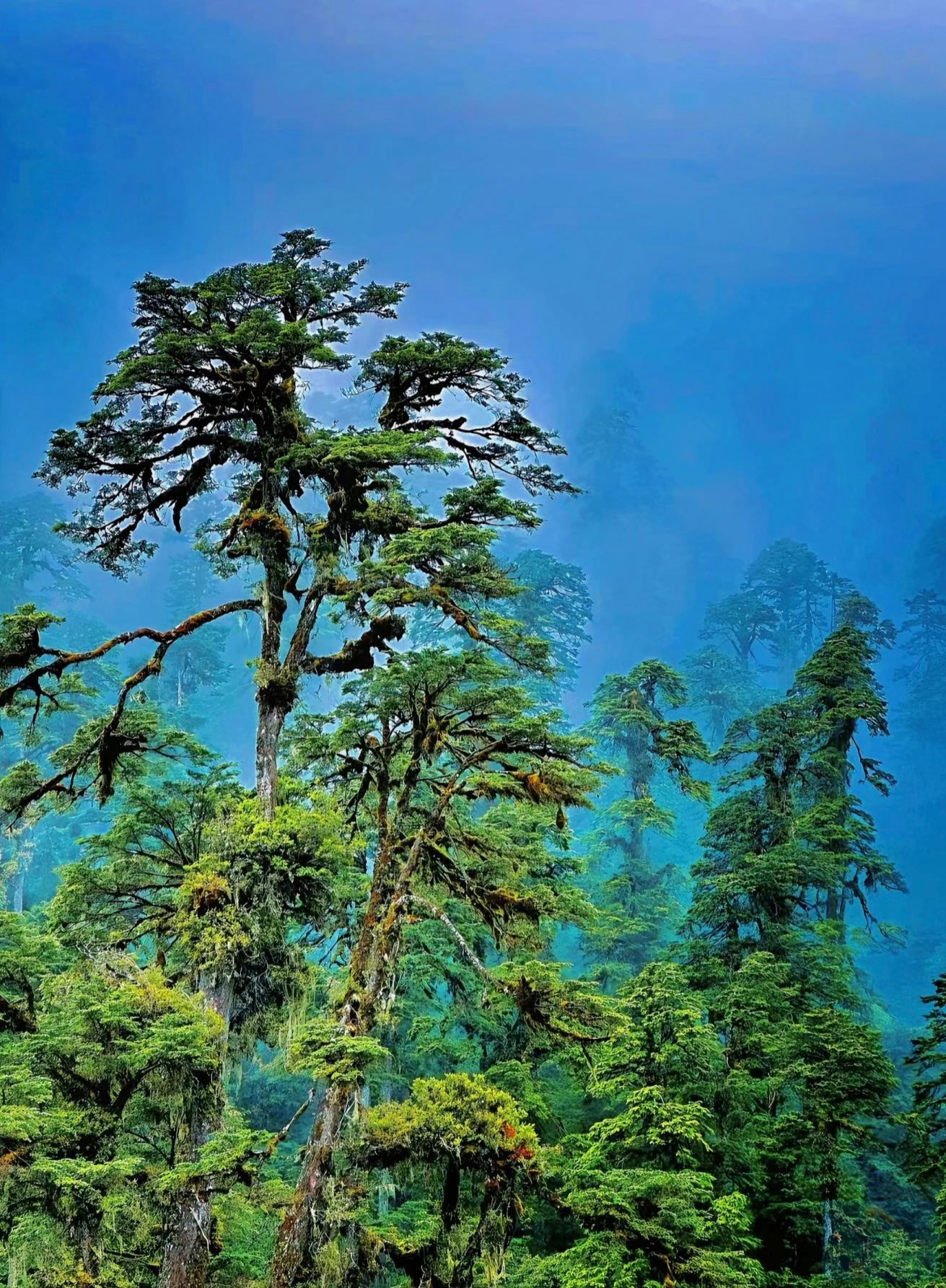 它是活着的生物博物馆森林以罕见的珍稀树种云杉和高山栎为主体,平均树高超过60米,部分树龄高达300-500年。笔直巨木林立,树干布满苔藓与松萝,营造出奇幻的“绿野仙踪”之感,是研究高原生态的天然样本。