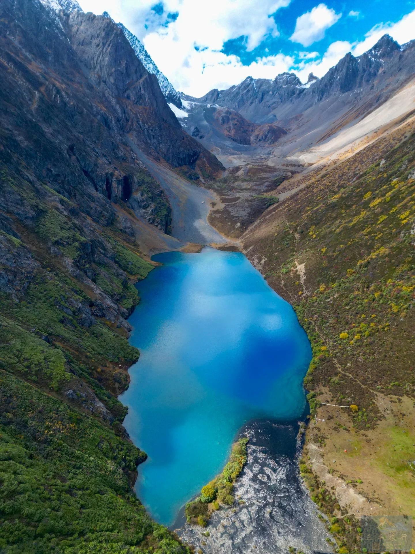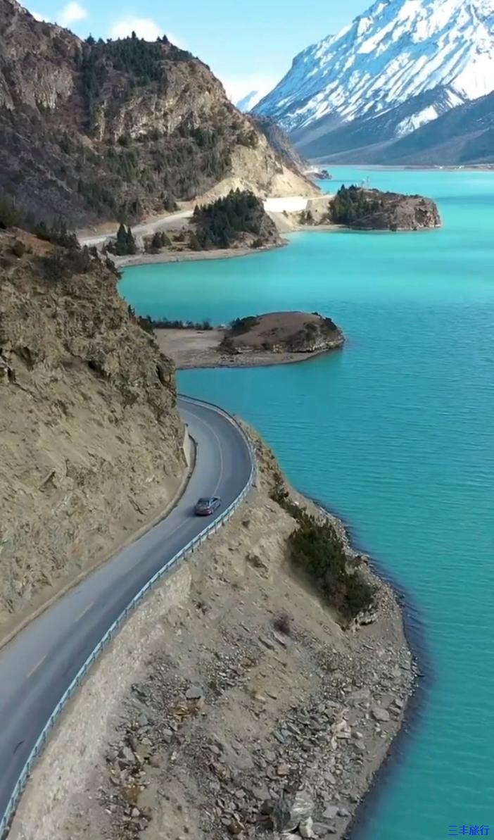 海拔3850米的然乌湖,在藏语里意为"羊奶湖",形容其湖水如羊奶般乳白。但实际上,在不同季节到访,你会看见它变幻着各种蓝色——春日是浅碧色的翡翠,夏日是深邃的宝石蓝,秋日是透亮的孔雀蓝,而在冬季封冻时,又呈现出乳白与淡蓝交织的奇异光泽。