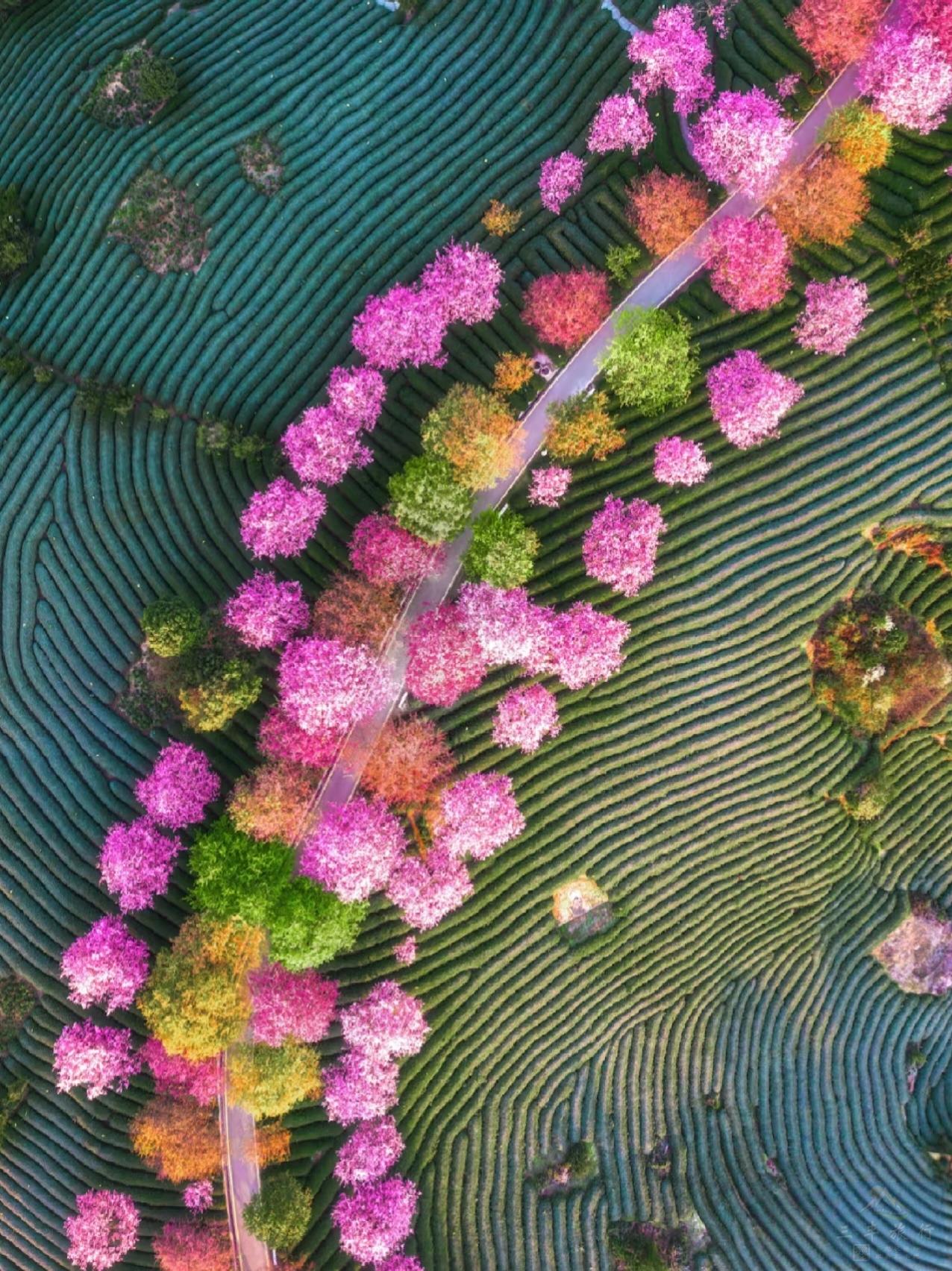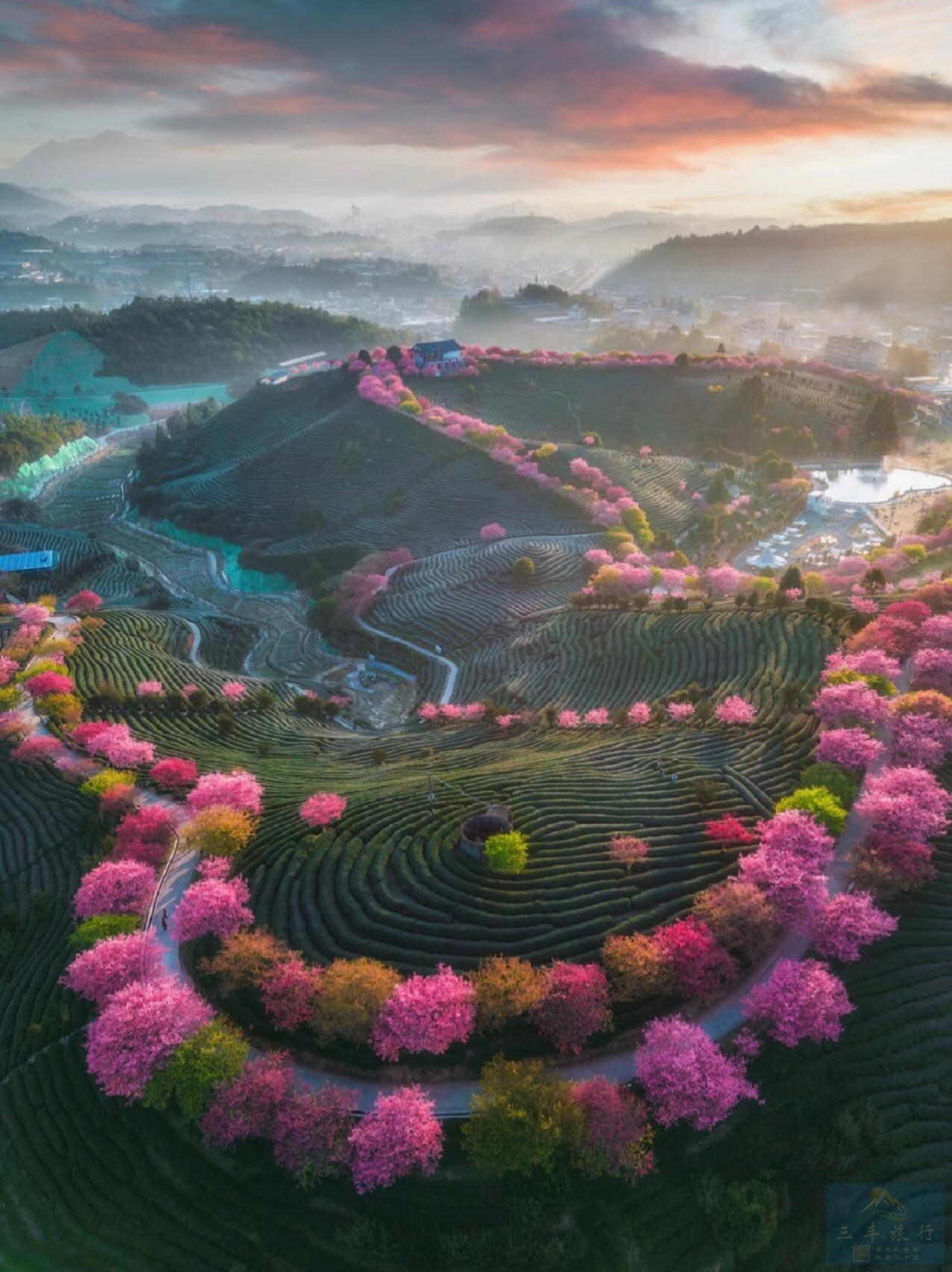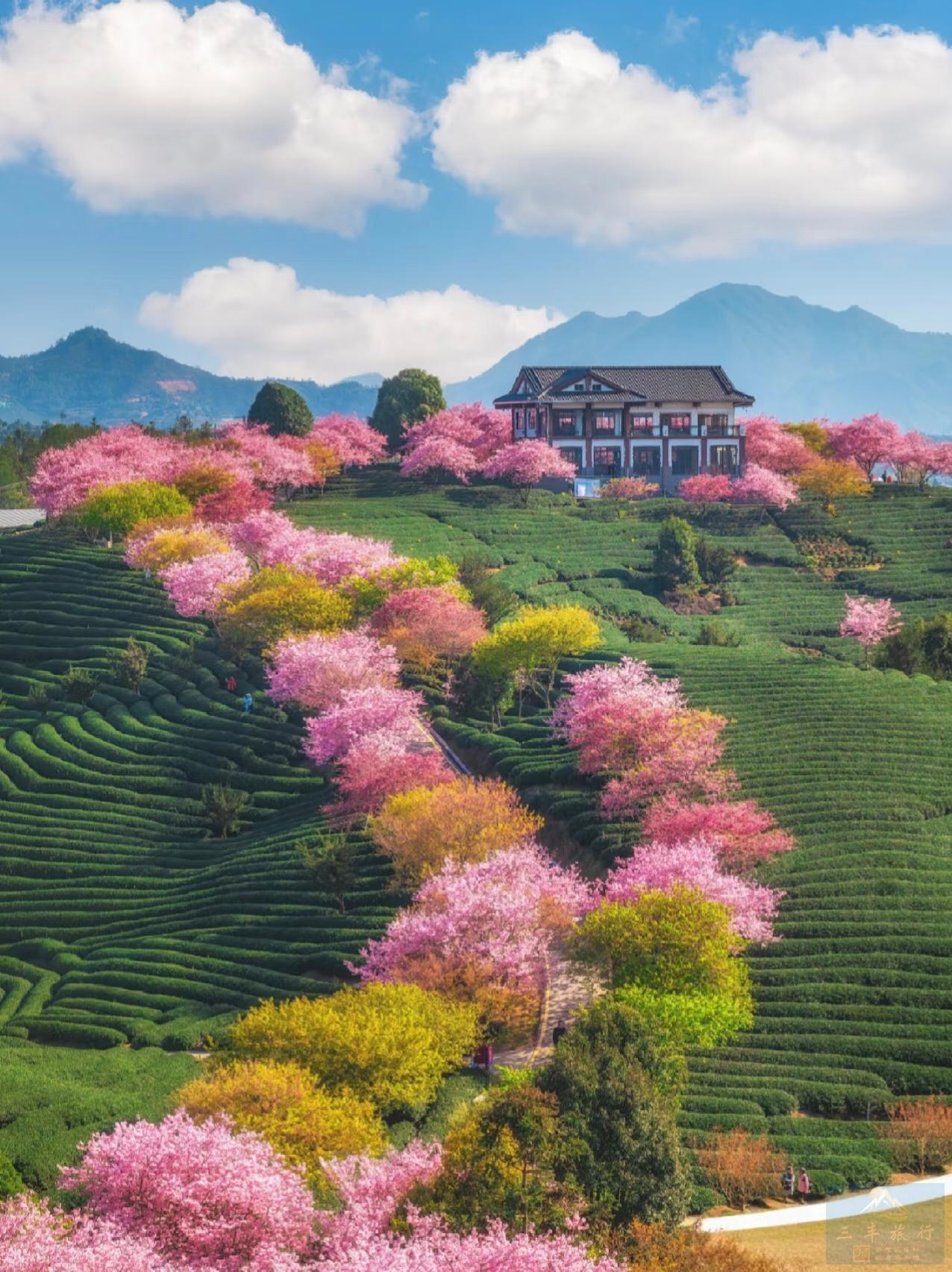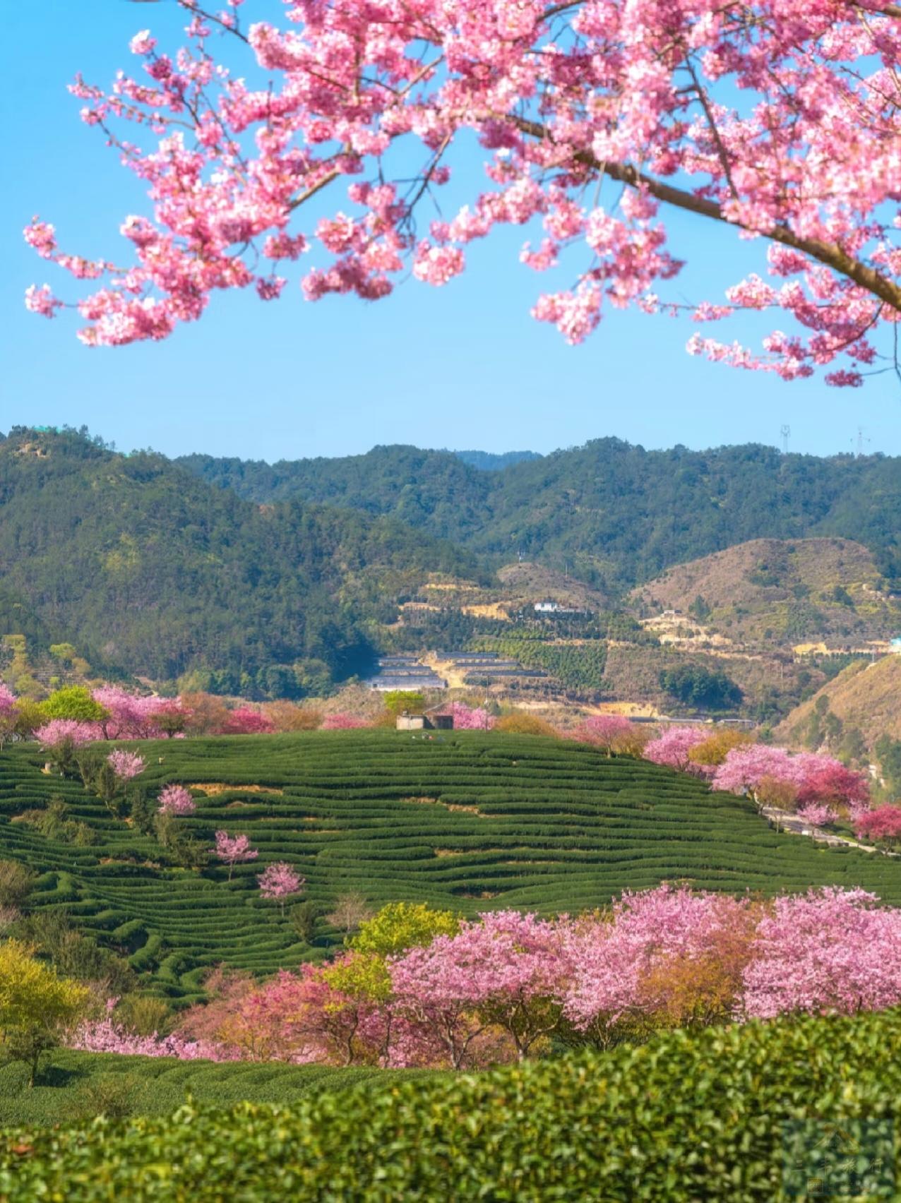 这里的樱花茶园,樱花不仅品种多,周期长,花期从1月下旬开始持续至3月中旬,漫山遍野开满了云南樱、福建樱、绯寒樱、牡丹樱等几十个品种的樱花,花开之时,漫山遍野,浪漫至极....