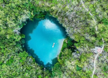 坐船游览世界唯一水游天坑,浩坤湖,靖西田园,德天瀑布