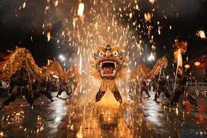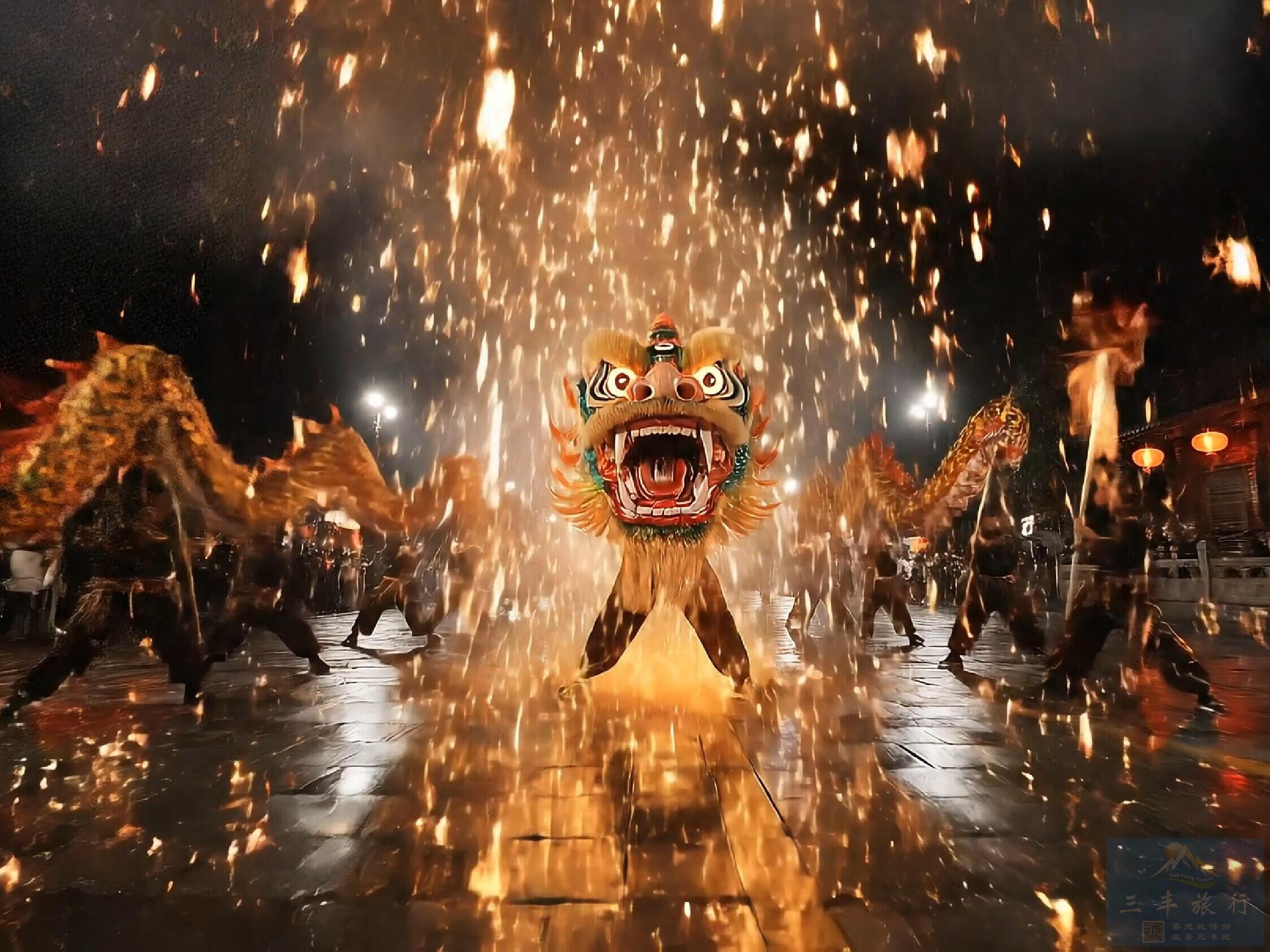 由村民组成的巡游队伍会抬着龙神神像,举着火把,敲锣打鼓地在村里的主要道路上进行巡游。