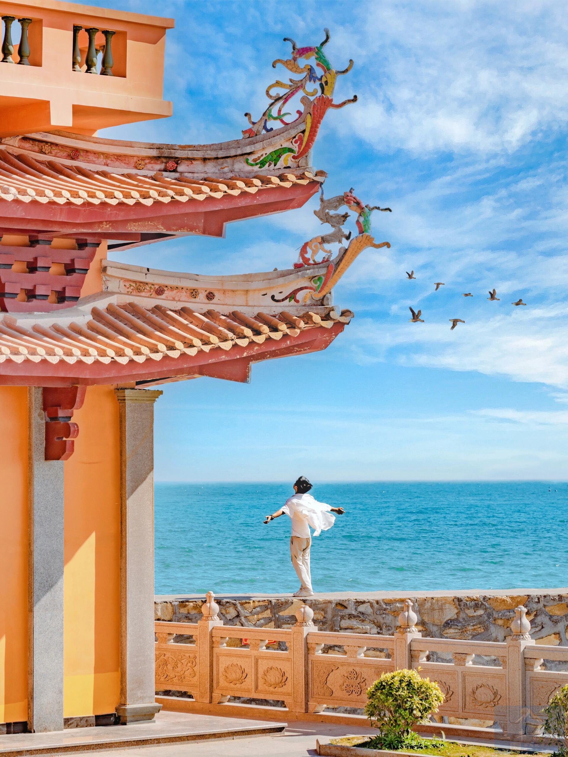 当大海涨潮时,只有桥能通往寺内 .犹如漂浮在海上的寺庙,这里便成了真正的海天佛国.强烈建议带上无人机,天气不好雾天也可以拍穿云,大雾下隐约浮现的海天佛国 ,显得格外震撼!