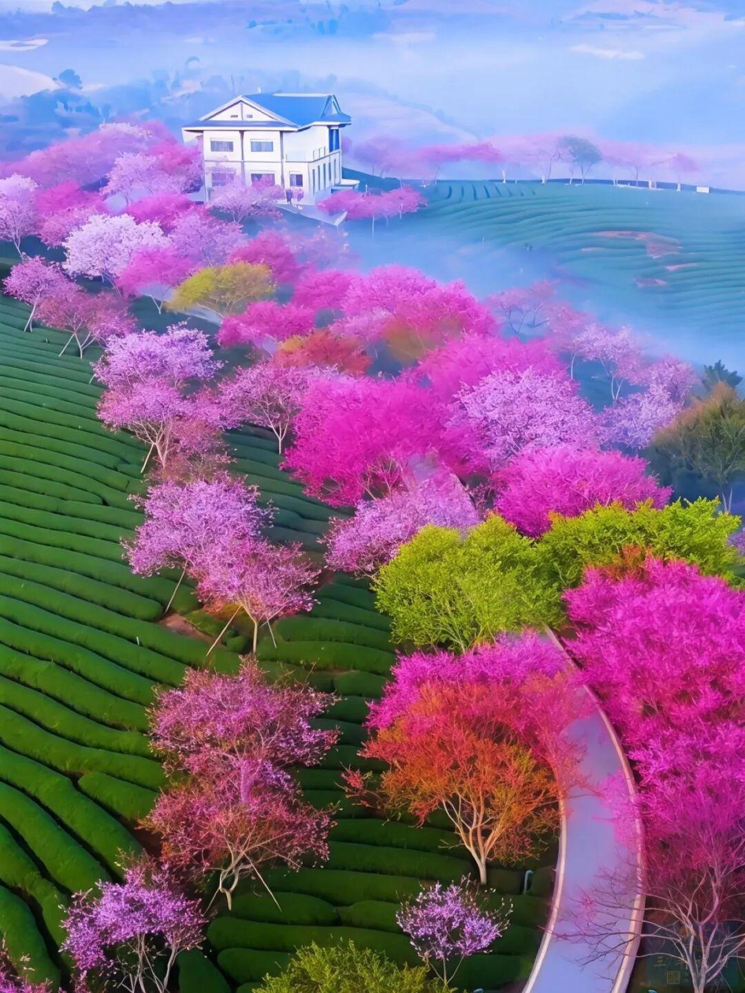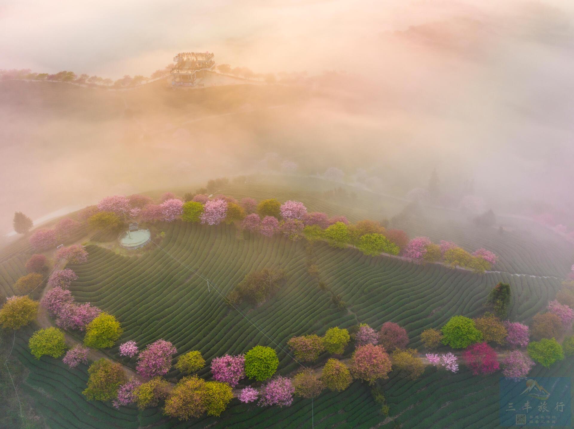 这里还曾经上过《中国国家地理》杂志的封面,我们漫步在4.5公里长的茶道小径上,可观赏两旁万余株樱花迎春绽放,大家可以在这里留下自己浪漫的樱花想象。