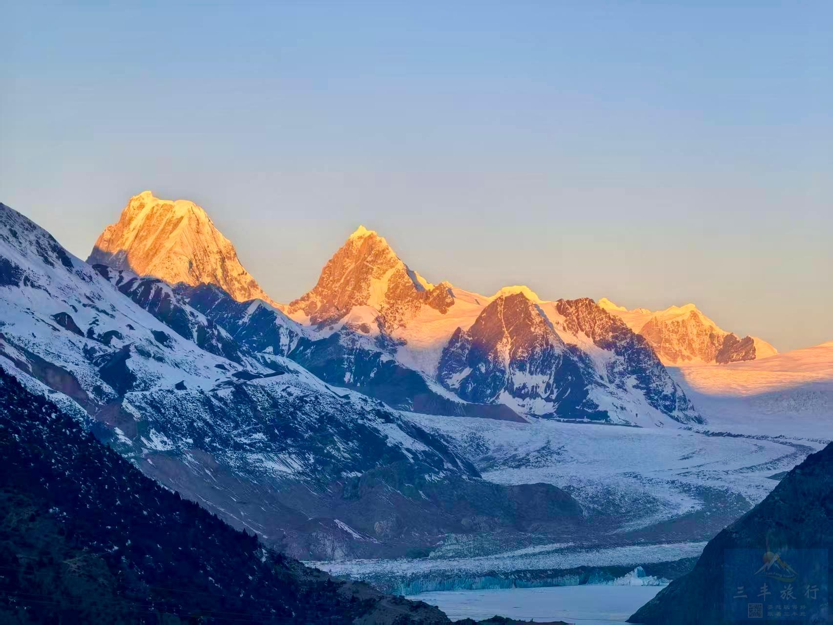 早上来古,也只有住在这里才能看到如此震撼的日照金山,这里没有喧嚣的人潮,只有风穿过冰缝的轻响,与湖水拍岸的浅吟,每一寸土地都藏着纯粹与安宁站在冰川脚下,看雪山与冰体相拥,任清风吹拂脸颊,仿佛能触摸到时光的痕迹,听见远古冰川的呼吸,所有的浮躁都在此刻沉淀,只剩满心的澄澈与敬畏