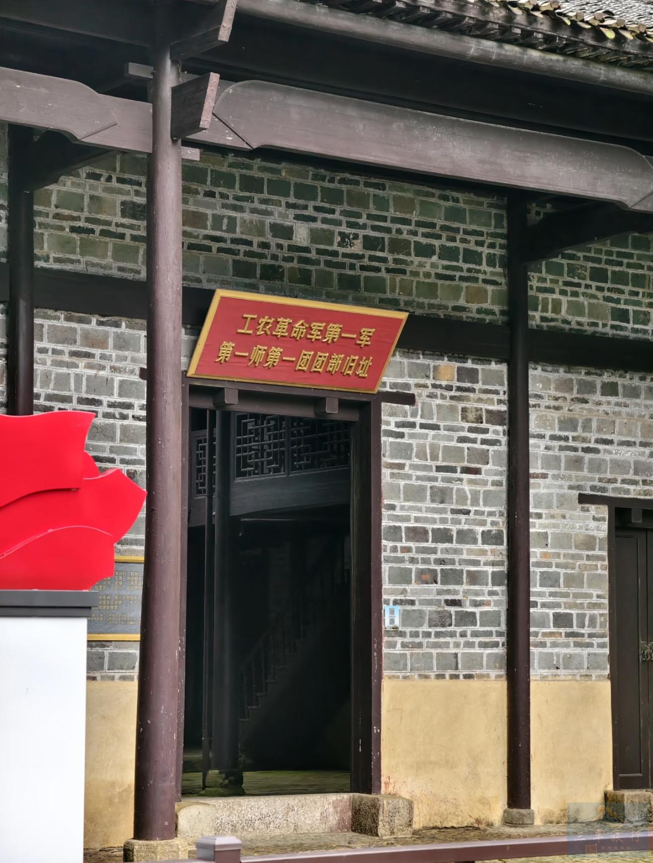 【工农革命军第一军第一师第一团团部旧址】原为钟家祠,坐东朝西,二层穿斗式砖木结构,硬山顶,小青瓦屋面,共一进四柱三开间。