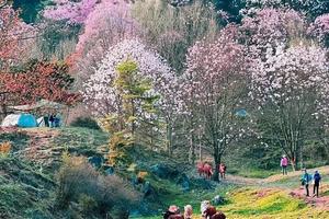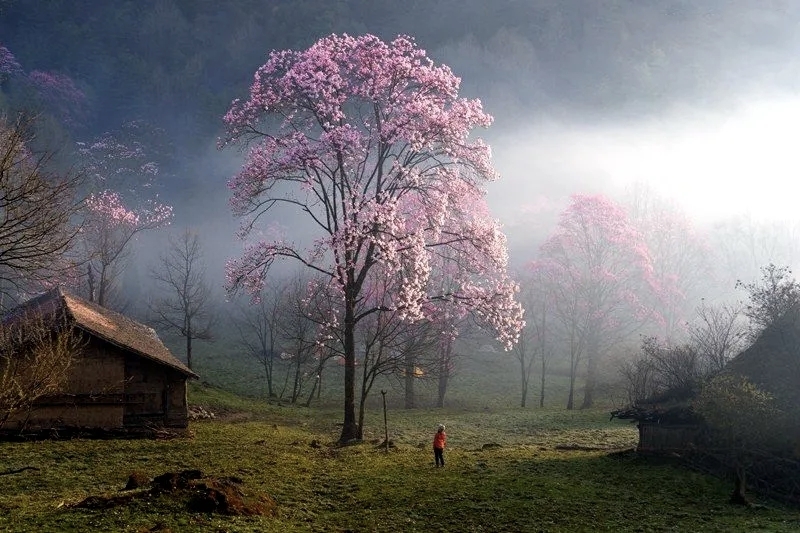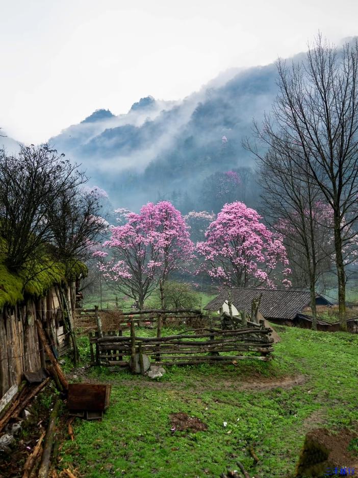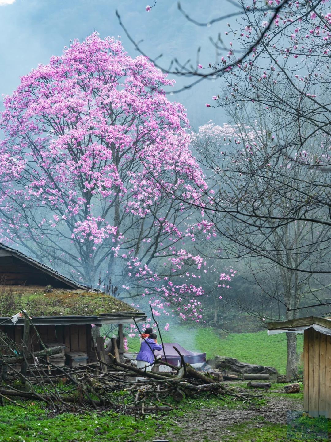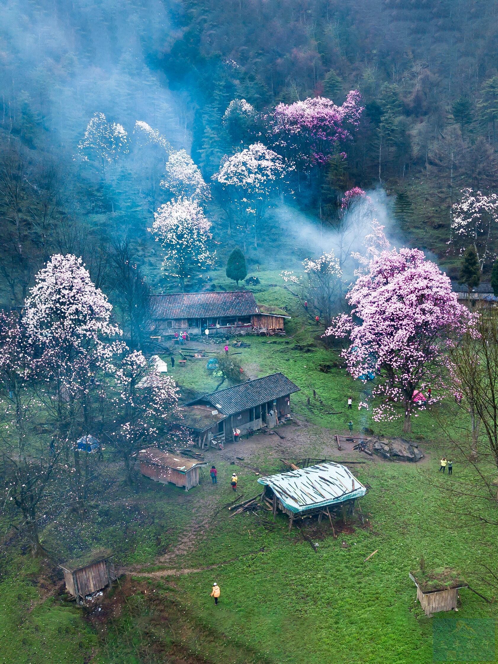 早起拍晨雾花丛,上午返回途中切入另外一条沟拍摄夫妻树,更壮观的花树群,下山徒步全程约10公里,下午回到江油。