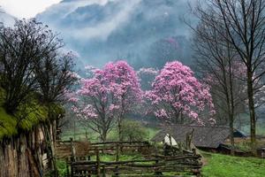 今天徒步前往藏王寨辛夷花童话世界,从归心谷上,轻装约4-6小时到大屋基10公里左右。今天住大屋基农家木屋或帐篷
