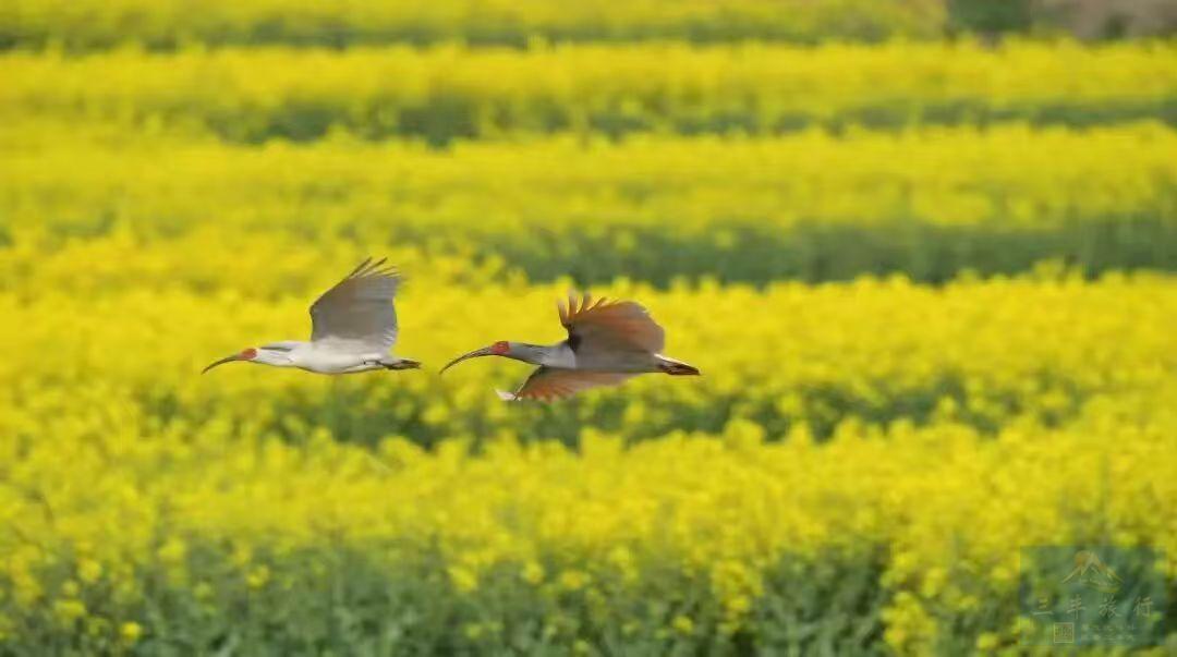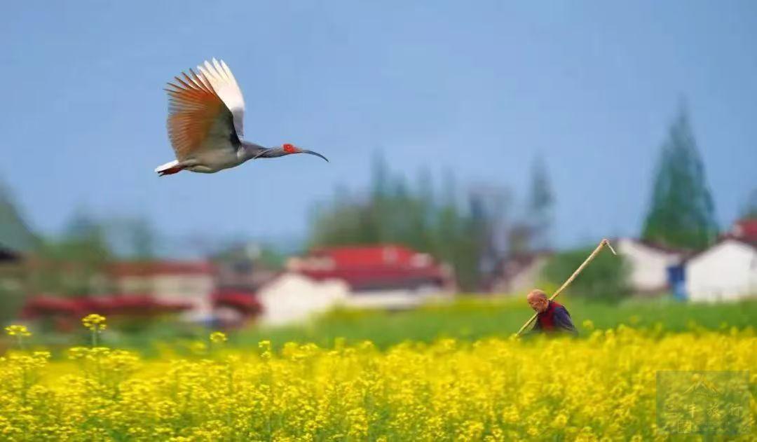“东方宝石”的国宝朱鹮衔着细嫩的枝桠飞过袅袅炊烟