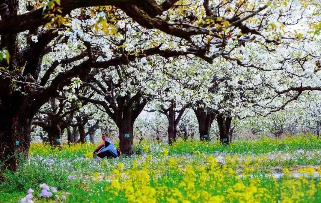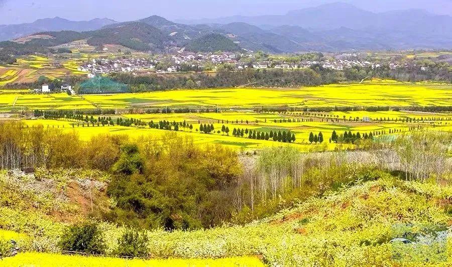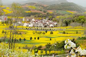 阳春三月,数万亩油菜花、梨花竞相绽放,争奇斗艳。放眼远眺,连绵起伏的山坡上梯田层层,金色的油菜花和银色的梨花交相辉映,犹如大海扬波,浪涛汹涌。蝶飞蜂舞,花香扑鼻。星罗棋布的村庄,清一色的白墙红瓦,整齐划一,恰似一艘艘巨轮在花海中游弋。朱鹮梨园犹如百里画廊,如诗如画。徜徉其中,令人心旷神怡。