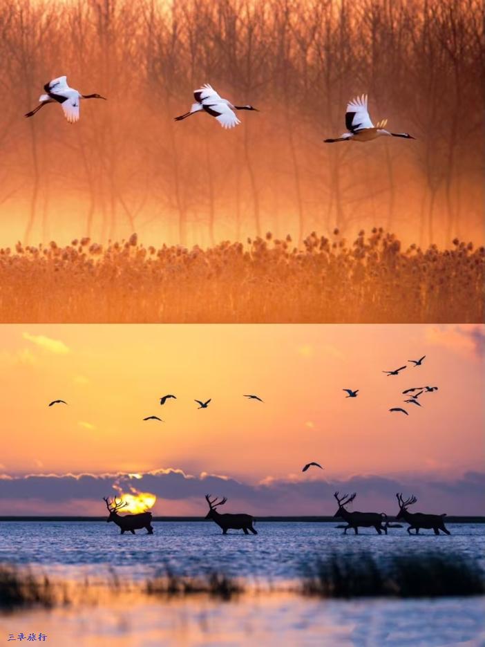上午早餐后,我们到达【野鹿荡】游玩,我们去寻找野生麋鹿和拍摄海边潮汐树震撼画面,下午去丹顶鹤湿地公园看丹顶鹤放飞。